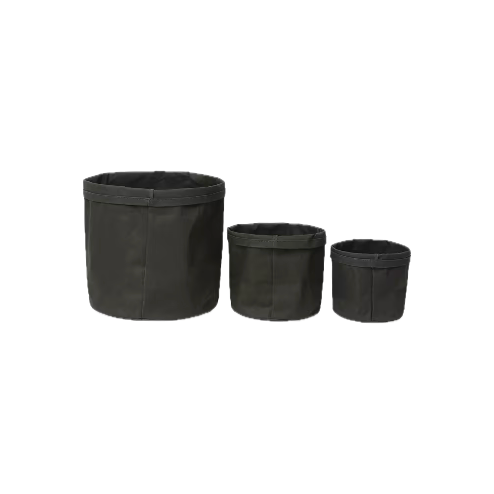 Set of 3 waxed canvas vases, durable and with a minimalist style, ideal for decorating your home or office with a functional touch. Dimensions: 14 x 16.5 cm, 17 x 19.5 cm, and 26 x 28.5 cm (5.5 x 6.5″, 6.7 x 7.7″, 10.2 x 11.2″). Finished with a Carhartt WIP square label. F/W 25 collection.