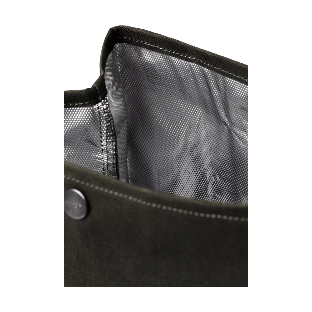 The Carhartt Lunch Bag is made of Dearborn canvas and the lining is treated with water-repellent wax. The lunch box also features a snap button closure. A square fabric label finishes the model.