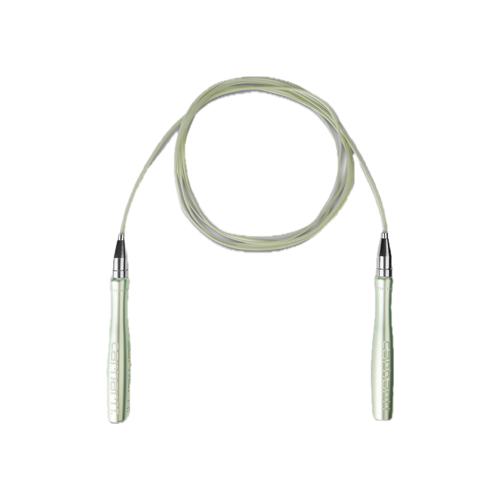 Workout in streetwear style. The Carhartt WIP Skipping Rope is a professional jump rope, perfect for high-intensity workouts, yet with a premium aesthetic. Crafted with anodized aluminum alloy handles (in the elegant “Yucca” shade of pastel green), it ensures durability, lightness, and an excellent grip during use. The cable is flexible and durable, designed for speed and fluidity of movement. A unique accessory for urban fitness, it features eco-friendly recyclable cardboard packaging and an engraved Carhartt logo on the handles.