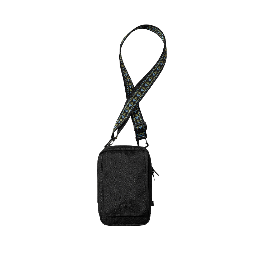 The Carhartt WIP Sylvan Travel Bag is made of recycled polyester Cordura© with water-repellent qualities. It features a two-way zipped main compartment and front flap pocket with a magnetized snap closure. The bag has an adjustable and removable jacquard shoulder strap, and loop at the back. An embroidered ‘C’ Logo appears on the front.