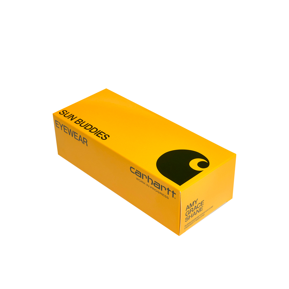 Per la collezione estiva 2021, Carhartt WIP ha nuovamente collaborato con il marchio svedese di occhiali premium Sun Buddies. La collezione rielabora tre degli occhiali da sole unisex firmati Sun Buddies in sei diversi colori e montature esclusive di Carhartt WIP. Ogni paio ha un marchio sottile ed è dotato di lenti ottiche di classe 1 con protezione UV al 100%.