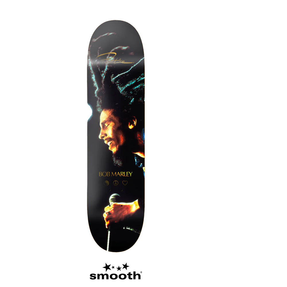 Skateboard prodotto dalla ditta Primitive Skateboarding, lo skate è realizzato in acero canadese a 7 strati e presenta nel retro una grafica di Bob Marley.
