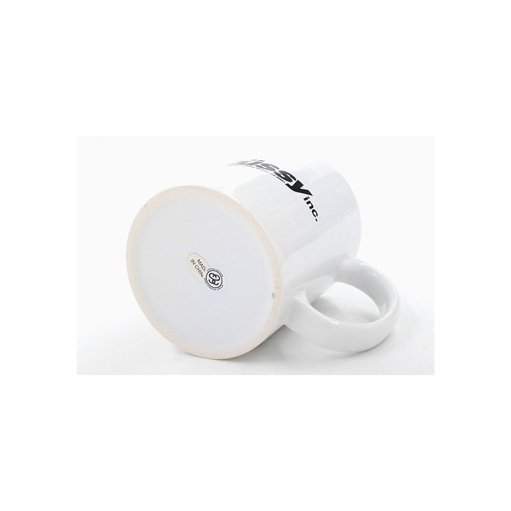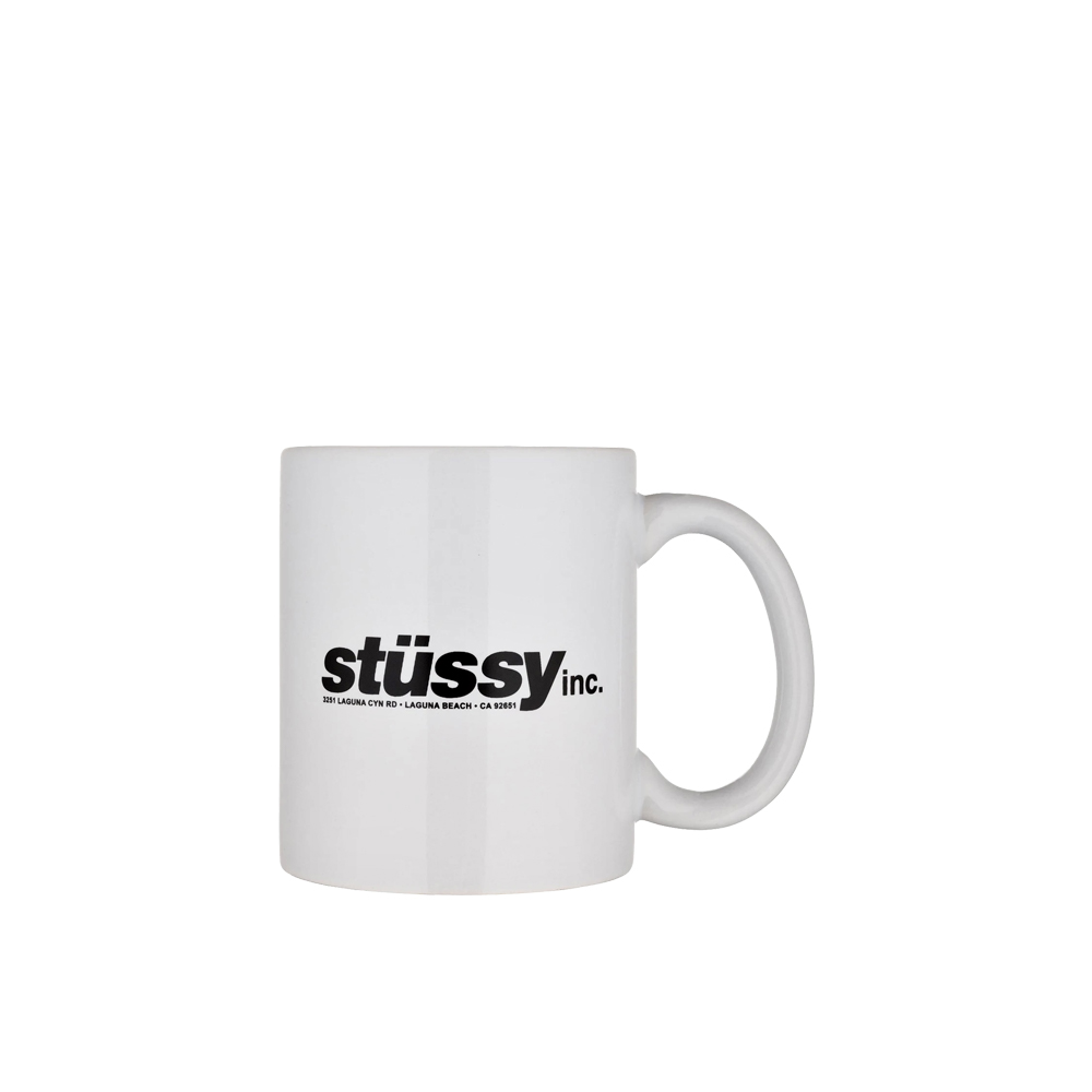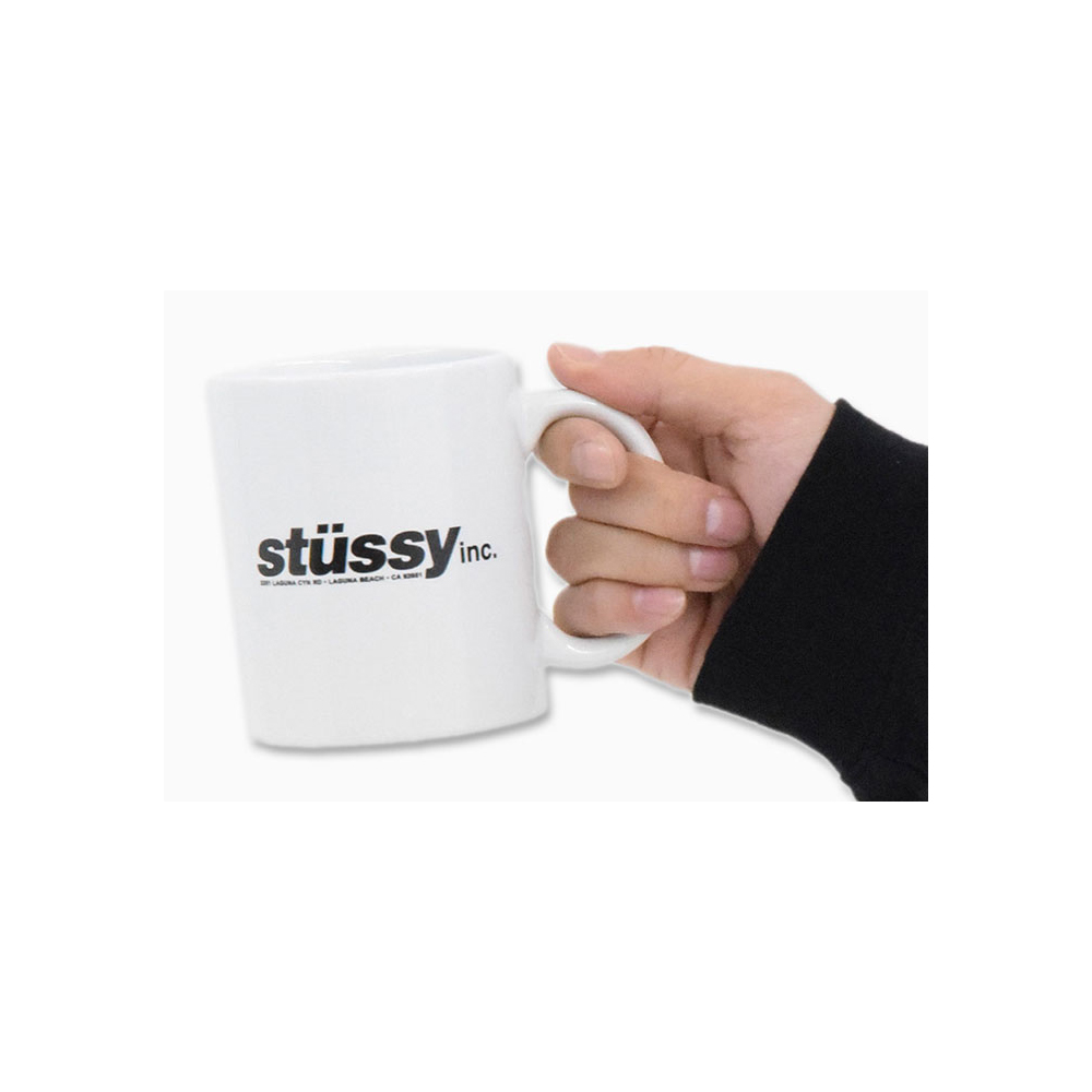 Add style to your breakfast with this white ceramic coffee mug from Stussy with C-handle.