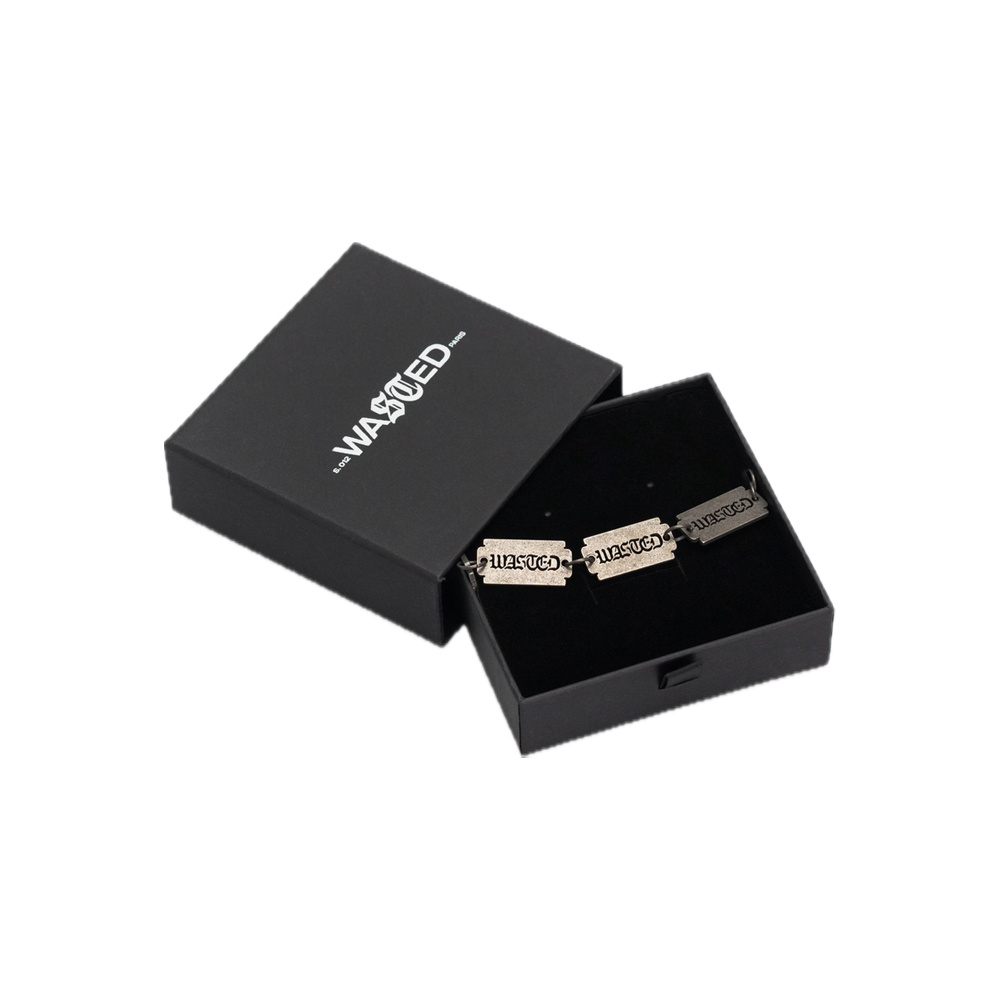 The Sharp Bracelet by Wasted Paris is a bold accessory, designed for those seeking a distinctive detail that can elevate any outfit. Its essential yet aggressive design recalls the brand’s street-punk aesthetic, transforming a minimalist bracelet into a true style statement. Crafted from durable metal, it features a sharp pendant that adds a touch of personality without being overbearing. Perfect for everyday wear or paired with other accessories for a more sophisticated look.