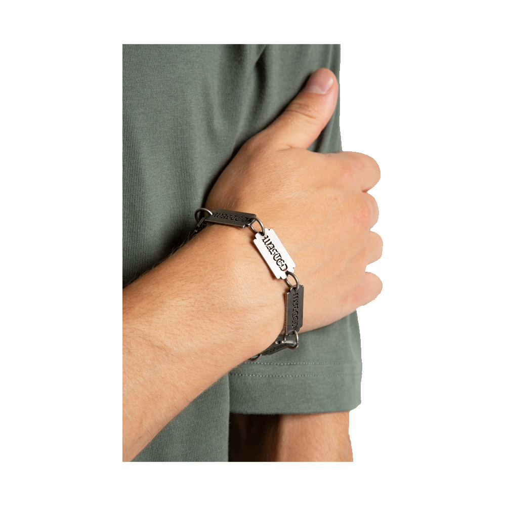 Il Sharp Bracelet di Wasted Paris è un accessorio dal carattere deciso, pensato per chi cerca un dettaglio distintivo capace di elevare ogni outfit. Il suo design essenziale ma aggressivo richiama l’estetica street-punk del brand, trasformando un bracciale minimal in un vero statement di stile. Realizzato in metallo resistente, presenta un ciondolo dalle forme affilate che aggiunge un tocco di personalità senza risultare eccessivo. Perfetto da indossare ogni giorno o da combinare con altri accessori per un look più ricercato.