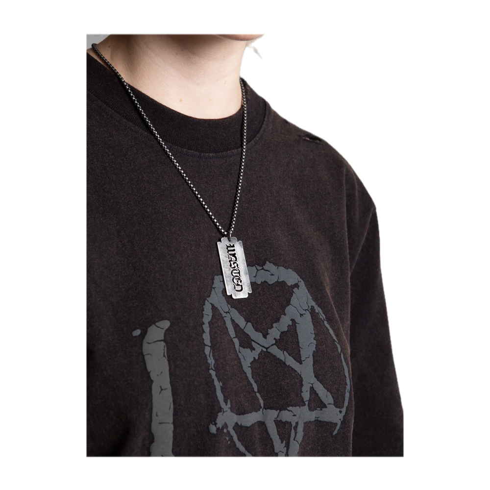 The Sharp Necklace by Wasted Paris is the perfect accessory for those who want to give their look a sharp and distinctive touch. Featuring a minimal yet aggressive design, this necklace combines the brand’s street-punk aesthetic with impeccable attention to detail. The sturdy metal chain supports a sharp pendant, designed to define your style with confidence and personality. An iconic piece capable of transforming even the simplest outfit.
