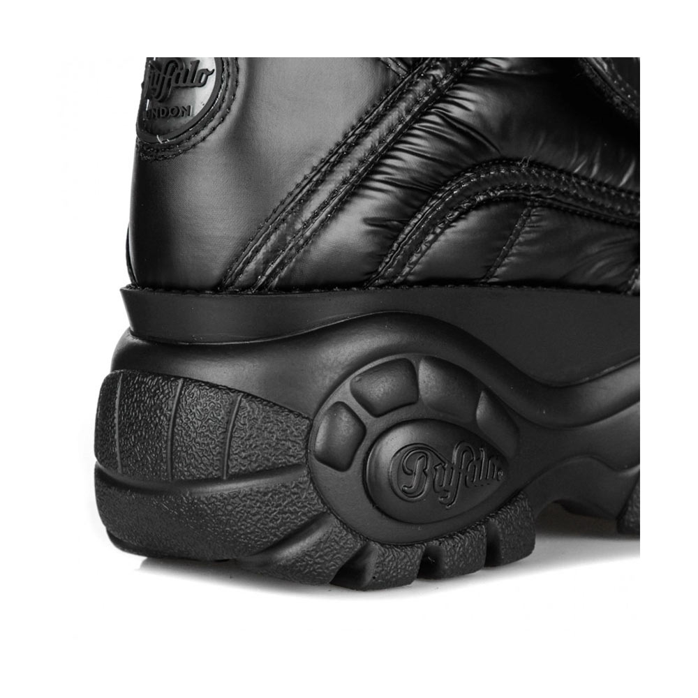 Non passerai inosservata con queste sneakers Buffalo ! Le scarpe presentano una tomaia in pelle liscia di colore nero, punta tonda, doppia chiusura frontale con strap e suola in gomma.