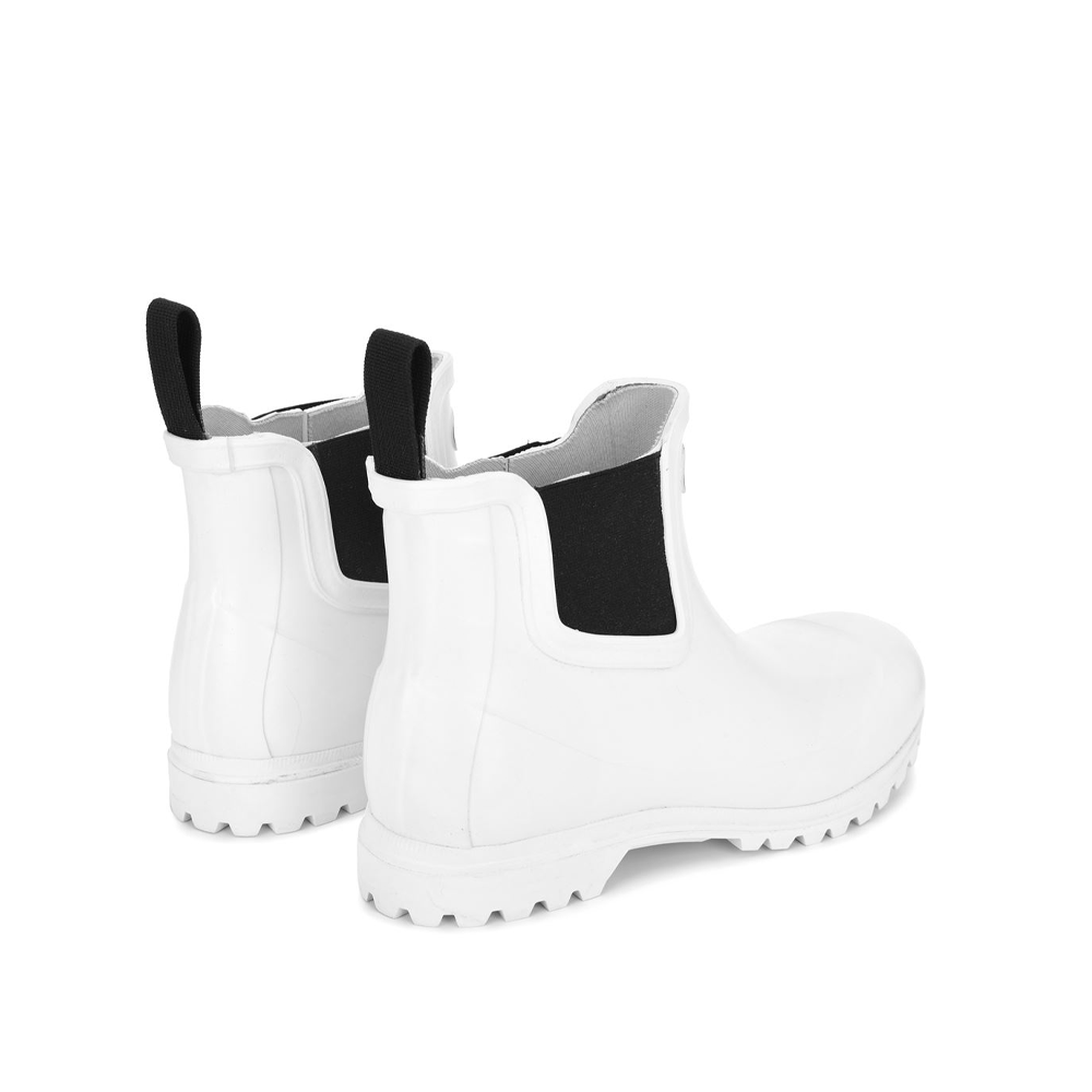 It is a short step from the countryside to the coolest streets of a metropolis. This Superga mid cut boot recalls the lines of the Beatles model and reinvents them with a sturdy rubber upper, the Alpina treaded sole, element of the Superga heritage, and an elegant contemporary and fashion forward color block game. The elastic inserts on the sides and the tape back facilitate the fit.