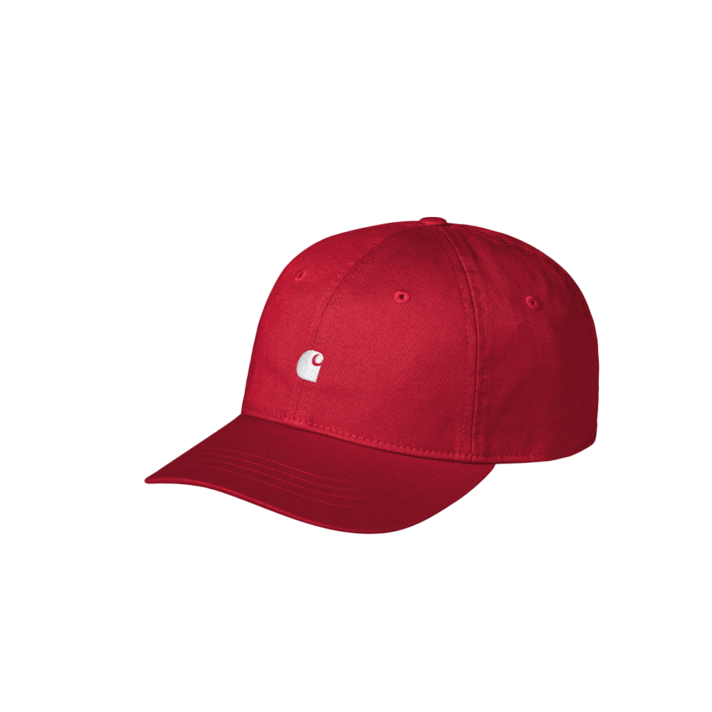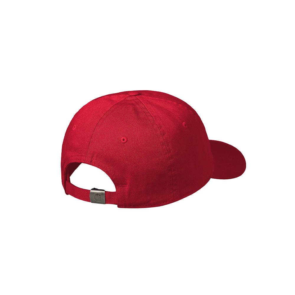 The Carhartt Work in Progress Madison Logo Cap, made of pre-washed fabric, is suitable for a head circumference of 57-62 cm / 22.4-24.4 inches. It features six elements, and is individually adjustable with a strap and a metal buckle.