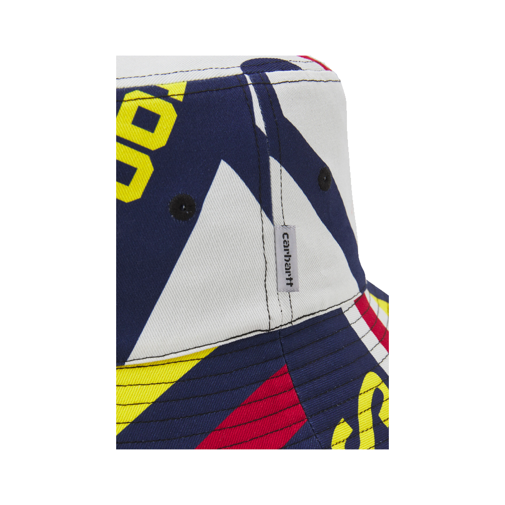 The Carhartt WIP Marine Bucket Hat is a four-panel style made of cotton twill. A reversible item, it features an allover seasonal graphic print on one side and a solid block color on the other.