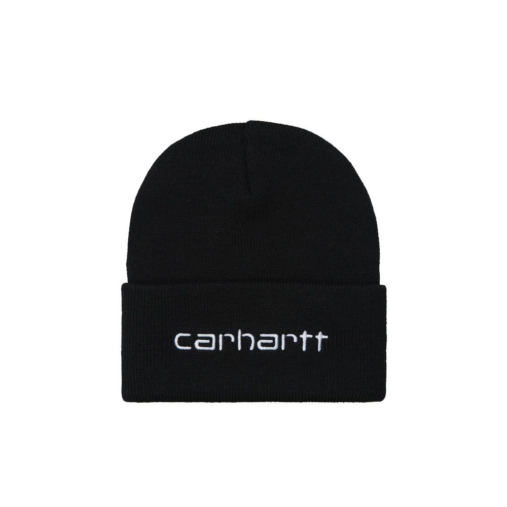 The Carhartt WIP Script Beanie is made from a 9 gauge ribbed stretch knit acrylic fabric for maximum comfort and adjustable fit. Finished with oversized graphics of the logo writing on the front.