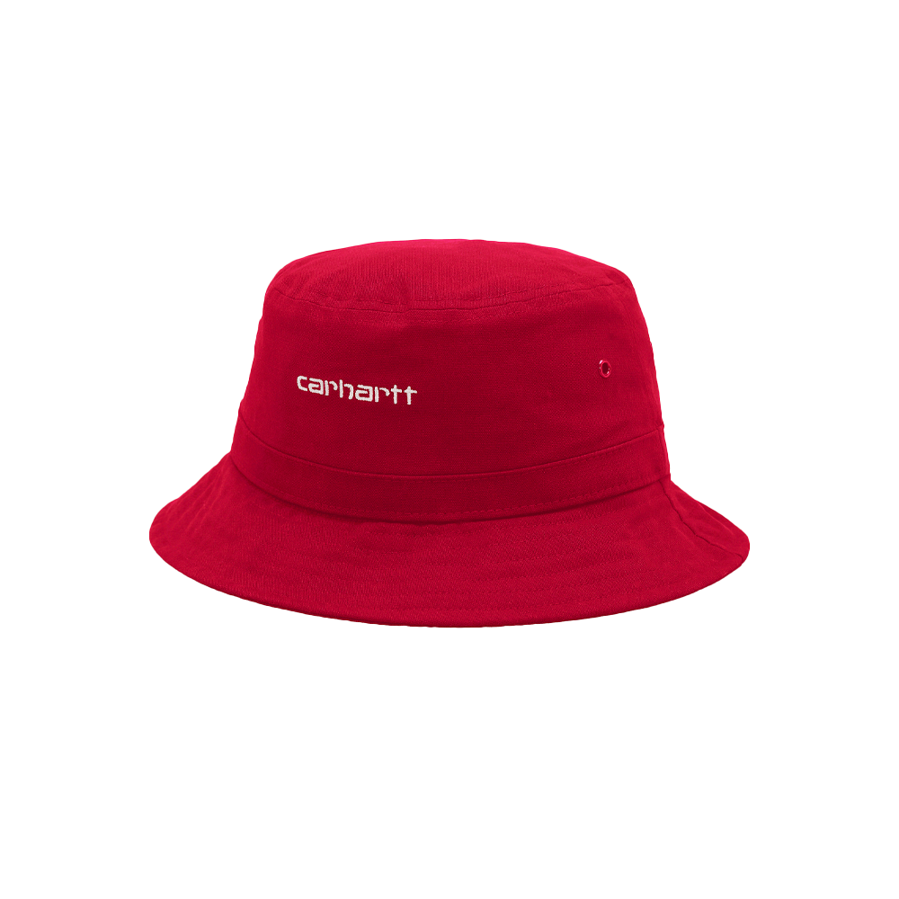 The Carhartt WIP Script Bucket Hat is a six-panel fisherman’s hat featuring tone-on-tone metal eyelets on the ventilation holes and embroidered Carhartt logo. The interior features branded tapes on the seams, a lightweight lining and a moisture-wicking sweatband.