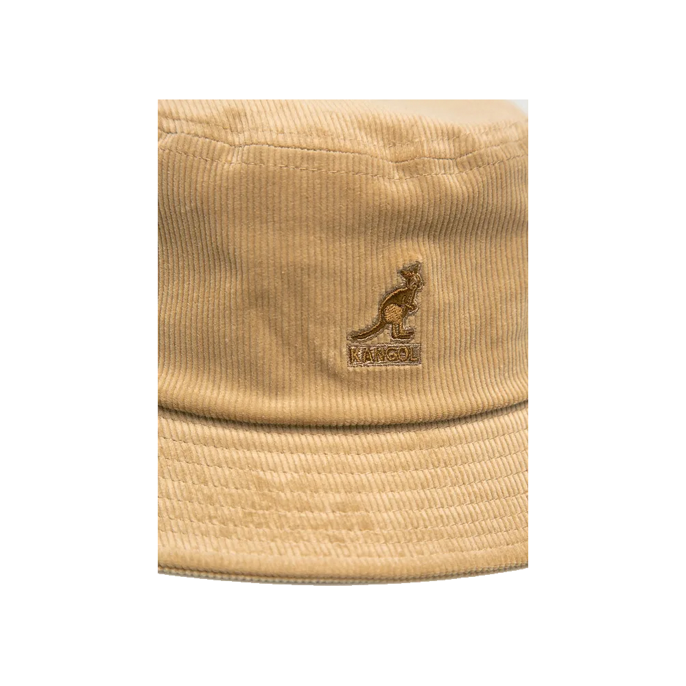 The Kangol Cord Bucket is made using fine wool cord. Its clean look and timeless shape make it the perfect hat for all seasons. The internal seams are taped with cotton. Cross hatching on the embroidered kangaroo logo adds definition.