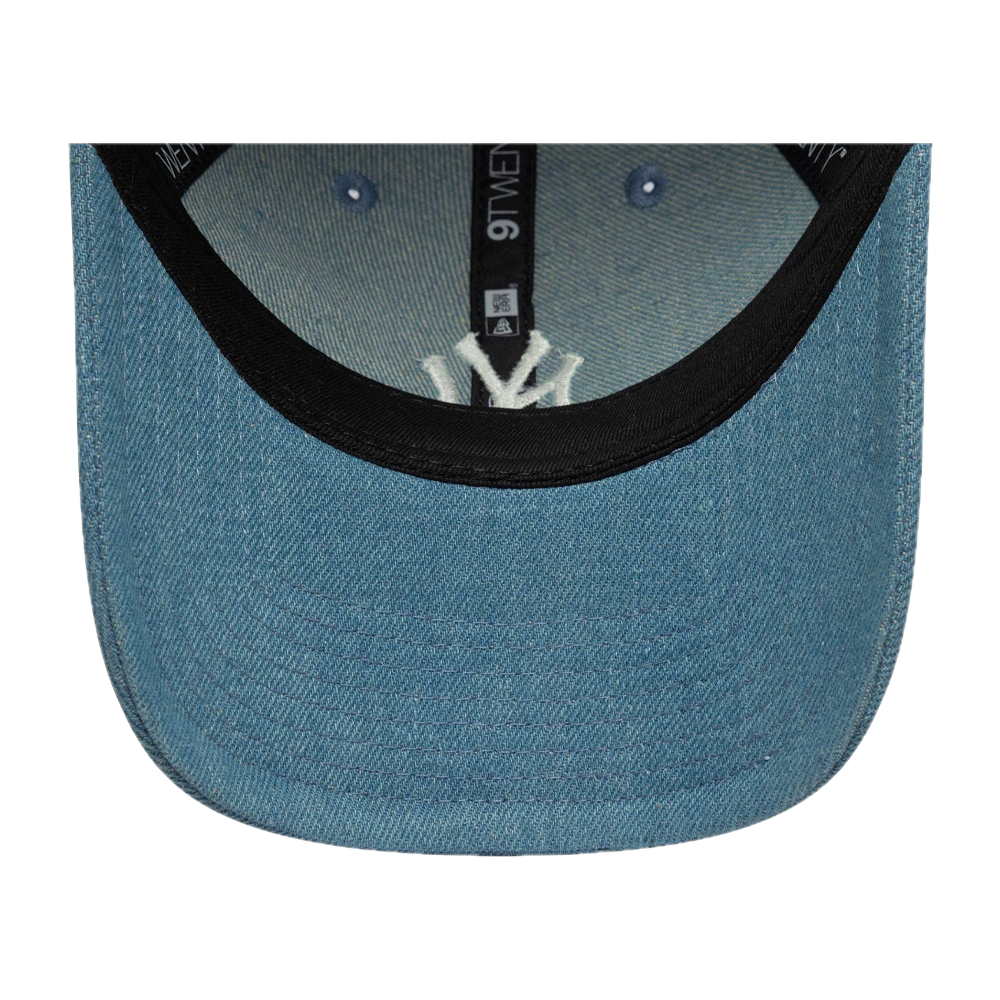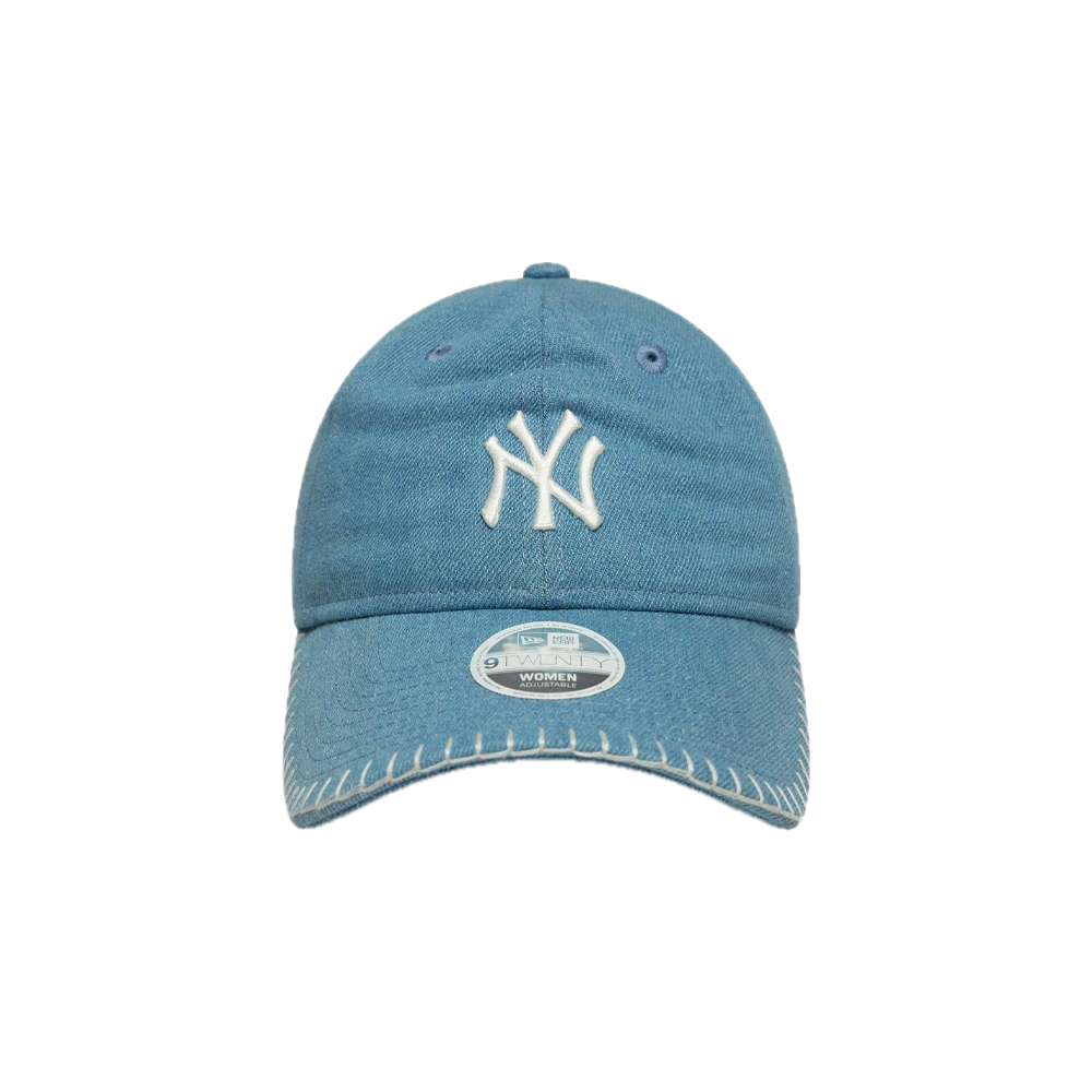 Women’s 9TWENTY New York Yankees MLB Denim Stitch Hat in Pastel Blue: casual and feminine style by New Era. The pastel blue shade provides a fresh and delicate look, enhanced by the New York Yankees logo embroidered with a denim stitch effect. The relaxed 9TWENTY fit with an adjustable closure is perfect for completing summer and casual outfits with a refined sporty touch.