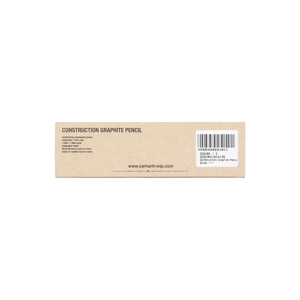 La matita Carhartt WIP Construction Graphite è una matita meccanica multitasking con gomma integrata, tre mine HB (0,7 mm) e uno stilo per touch screen mobili.