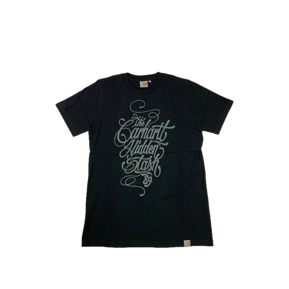 His art captures the chaotic energy of the city and the spirit of old-school graffiti. This t-shirt perfectly embodies that style, featuring the phrase “The Carhartt Hidden Stash 89” in Stash’s distinctive handstyle script.
