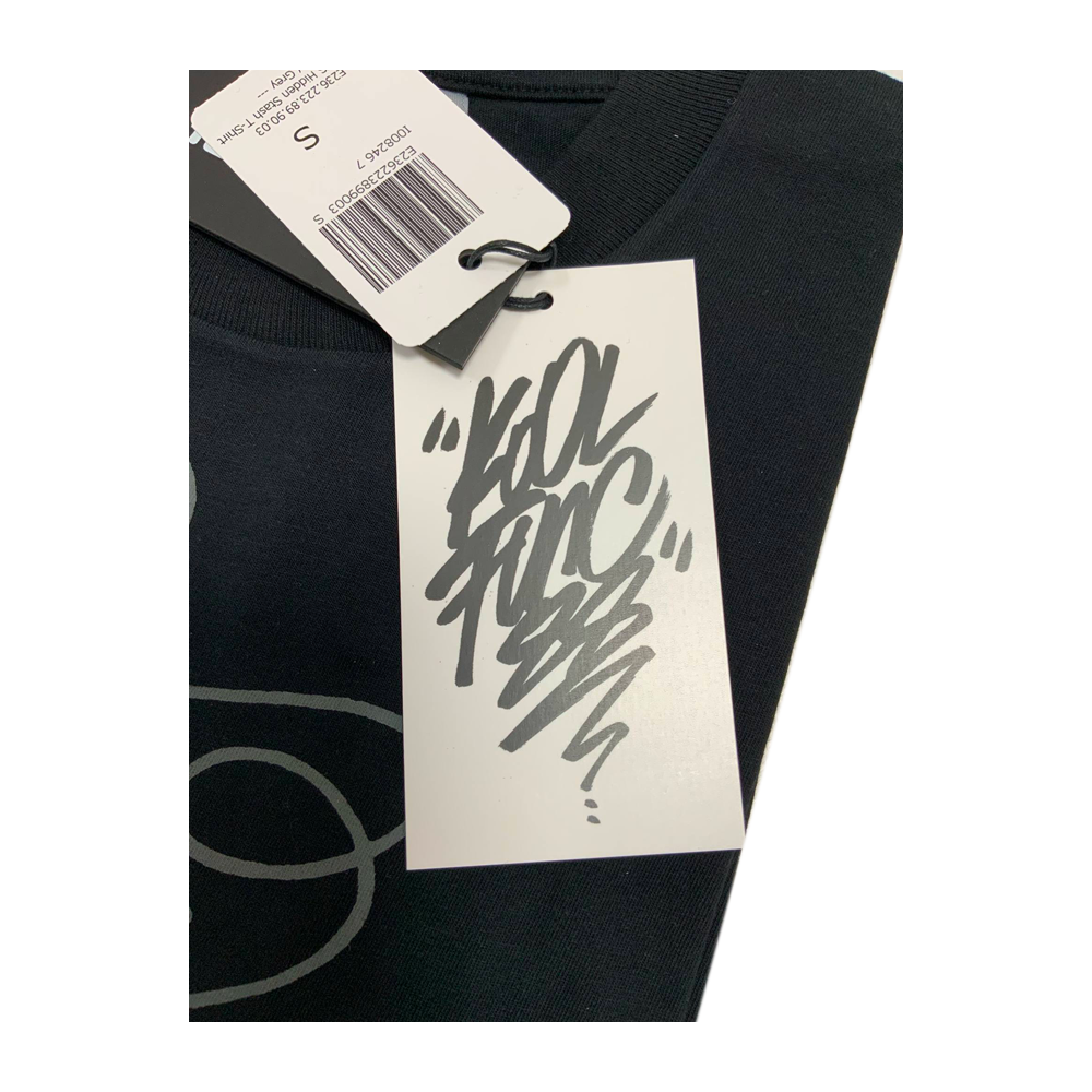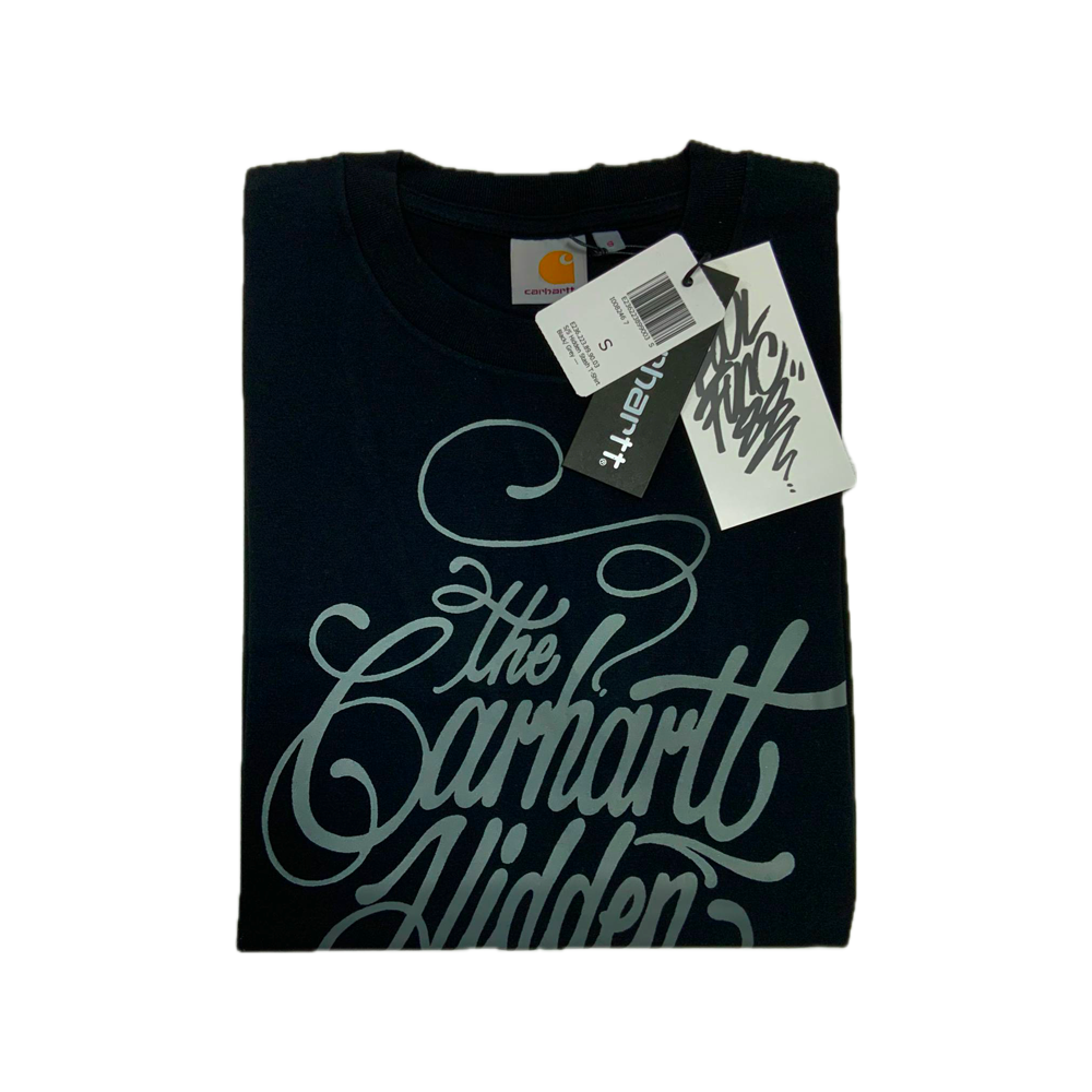 La sua arte riflette la vitalità caotica della città e l’energia cruda del writing old-school, e questa t-shirt ne è un esempio perfetto: la scritta “The Carhartt Hidden Stash 89” è realizzata con uno stile calligrafico unico, emblema della sua firma creativa.