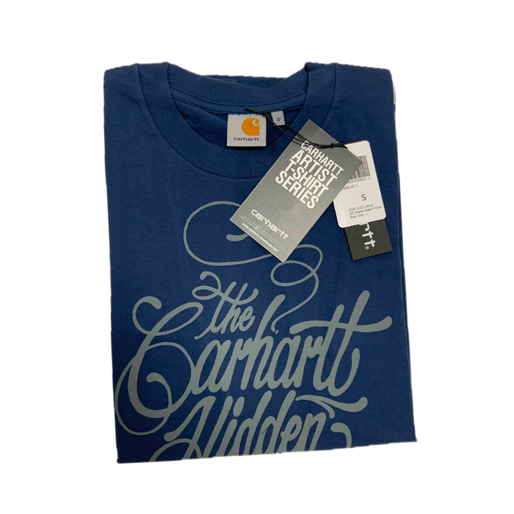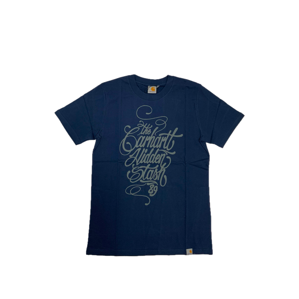 His art captures the chaotic energy of the city and the spirit of old-school graffiti. This t-shirt perfectly embodies that style, featuring the phrase “The Carhartt Hidden Stash 89” in Stash’s distinctive handstyle script.