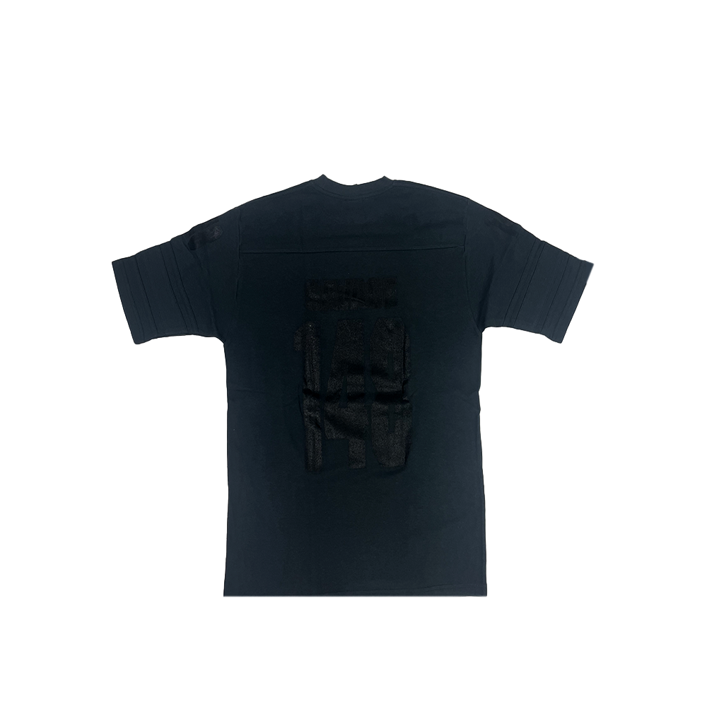 Ispirata all’estetica delle jersey da football americano, la t-shirt “Savage 149” di Neighborhood unisce sportività e sobrietà in un capo streetwear dalle tonalità completamente nere. La grafica frontale, con scritta “SAVAGE” e il numero “149” in stile jersey, è stampata in rilievo con effetto tono su tono lucido su una base in cotone nero opaco, per un look tecnico e sofisticato. Anche sul retro la stessa stampa è riproposta integralmente, creando simmetria e continuità visiva. Le maniche sono arricchite da cuciture orizzontali che rievocano i pannelli delle maglie da gioco, mentre sul fondo anteriore è cucita una patch nera con logo Neighborhood Technical Apparel. All’interno, l’etichetta con il logo “sm1x” e la progressione degli anni evidenzia l’annata 2004, a cui risale presumibilmente la produzione del capo. Fit regolare, con dettagli tecnici e costruzione solida che testimoniano l’attenzione artigianale del brand giapponese.
