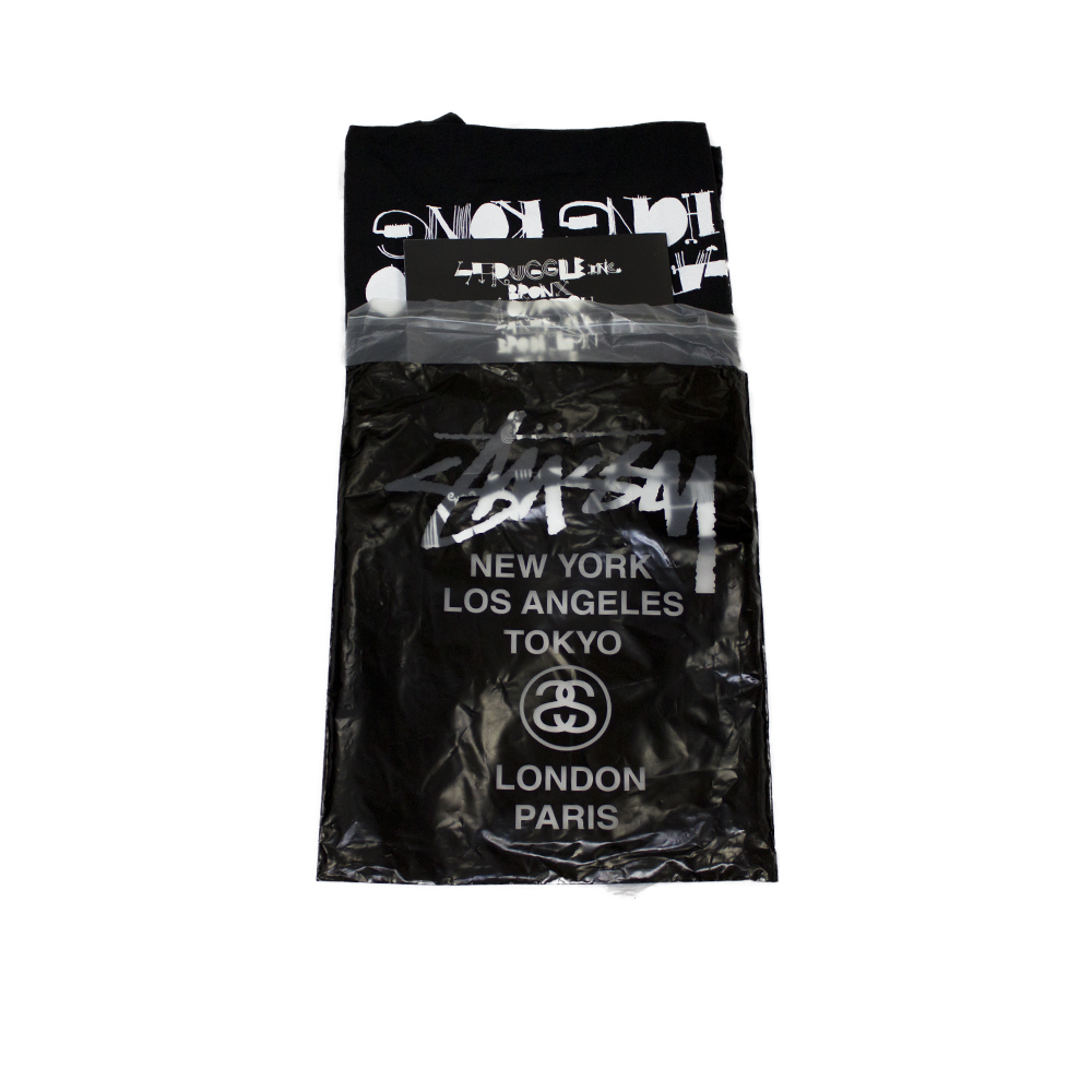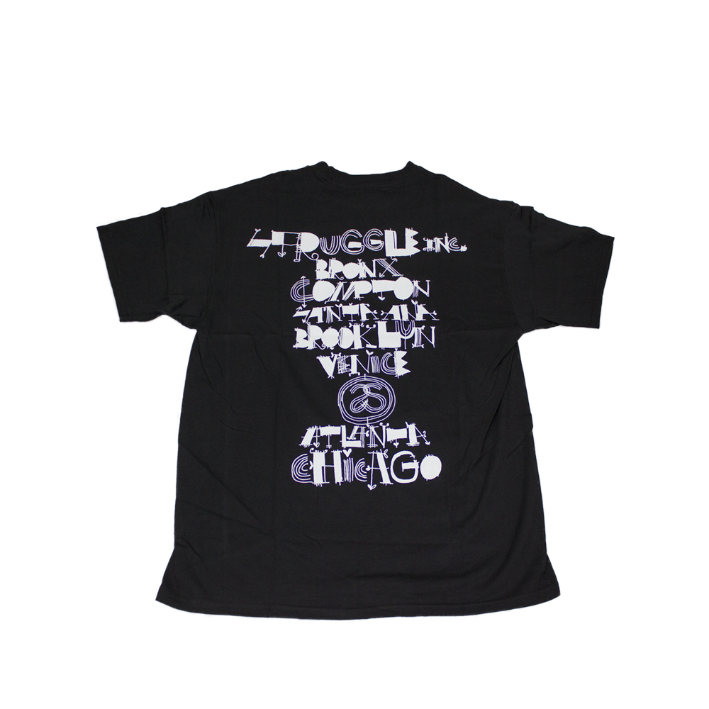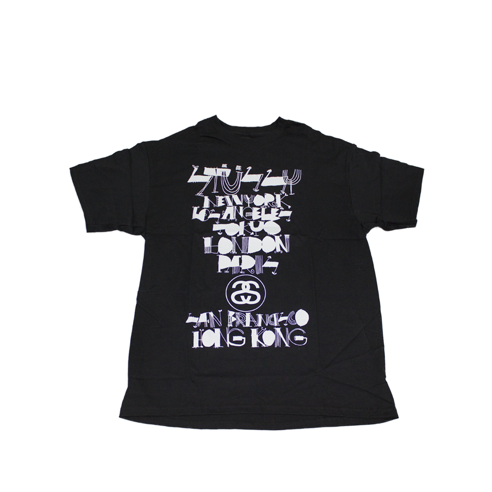 L’autunno del 1989 è stato ricordato per la prima uscita della t-shirt Stussy World Tour. Shawn Stussy ha creato quello che sarebbe diventato un concetto duraturo nel design grafico di t-shirt. L’idea e l’esecuzione erano semplici: accostare due culture di mondi tradizionalmente diversi – un dispositivo di stile che era stato usato nell’arte e nella musica. Sul davanti della maglietta, i nomi delle città associate ai giganti della moda e del glamour di fascia alta sono scritti in un tipo elicoidale stoico e formale. Londra, Parigi, Los Angeles, New York, Tokyo, queste erano le città considerate le capitali dello stile del mondo contemporaneo. La parte posteriore della maglietta era stampata con nomi di quartieri in cui il nostro tipo di cultura di strada era in realtà fiorente. Considerate oscure e sotterranee, queste aree urbane non sfruttate stavano per scuotere il mondo. Scarabocchiato in un manoscritto disegnato a mano, il retro della maglietta si scontra con la parte anteriore in stile, aspetto e significato. Il graffito è stato un grido per queste città: Brooklyn, Bronx, Compton, Santa Ana e Venezia, e sta nuovamente riprendendo una nuova atmosfera, direzione e atteggiamento.