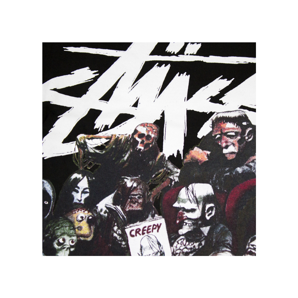 Per entrare nello spirito di Halloween, Stussy ha collaborato con il leggendario Creepy Magazine per una serie di magliette e cappelli, usando opere d’arte originali tratte dagli archivi di Creepy. Creepy era una rivista horror-fumetto americana molto popolare lanciata dalla Warren Publishing nel 1964. Era una pubblicazione in edicola in bianco e nero con opere d’arte di alcuni dei più influenti artisti di fumetti di tutti i tempi, tra cui Frank Frazetta, Steve Ditko, Neal Adams e John Severin. La rivista Creepy è stata citata da molte leggende e illustratori di graffiti della vecchia scuola del settore dello skateboard come una grande influenza su di loro quando crescevano.