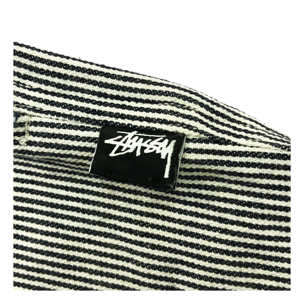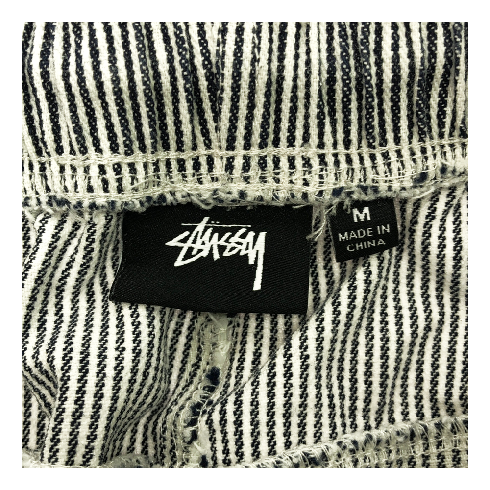 The “Hickory Stripe Beach Pant” by Stussy are distinguished by the thin hickory-style striped pattern, originally created in American shipyards and now synonymous with street heritage style. The structure is lightweight but resistant, with a soft cut and elasticated waist with woven drawstring for a relaxed but adjustable fit. Perfect for wearing on summer days or as a statement piece in a layering outfit, these trousers combine practicality and identity with a spirit that looks to Japan, as evidenced by the “Stussy Japan” label on the inside.