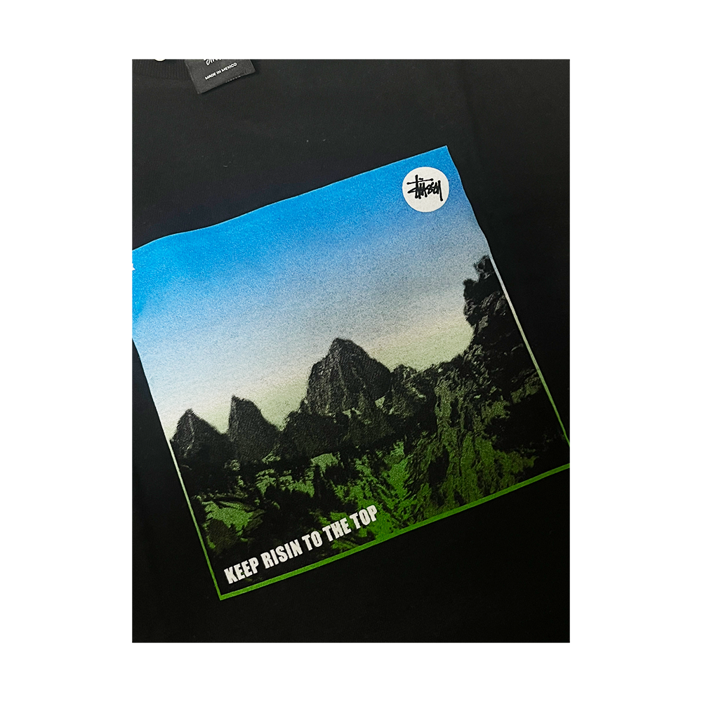- Graphic: “Keep Risin’ to the Top” scenic print on front + Stüssy logo on back