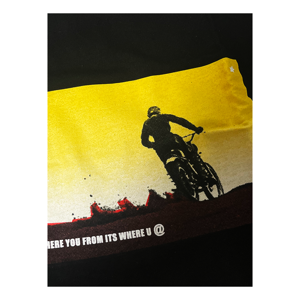 - Graphics: gradient print “Motocross Rider” with slogan “