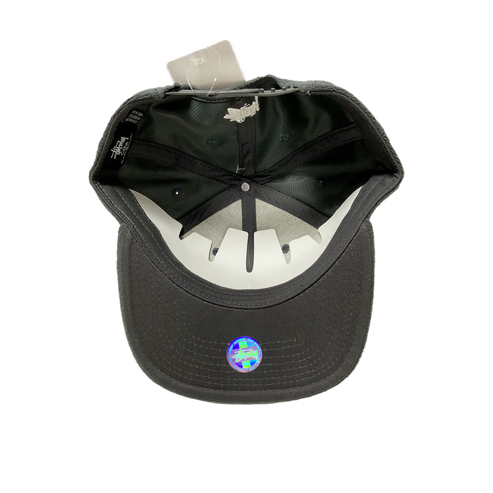 Stussy cap made of soft fabric with adjustable closure. The hat features an ‘S’ applied to the front, a small Stussy crown embroidered on the side and a contrasting Stussy logo embroidered on the back.