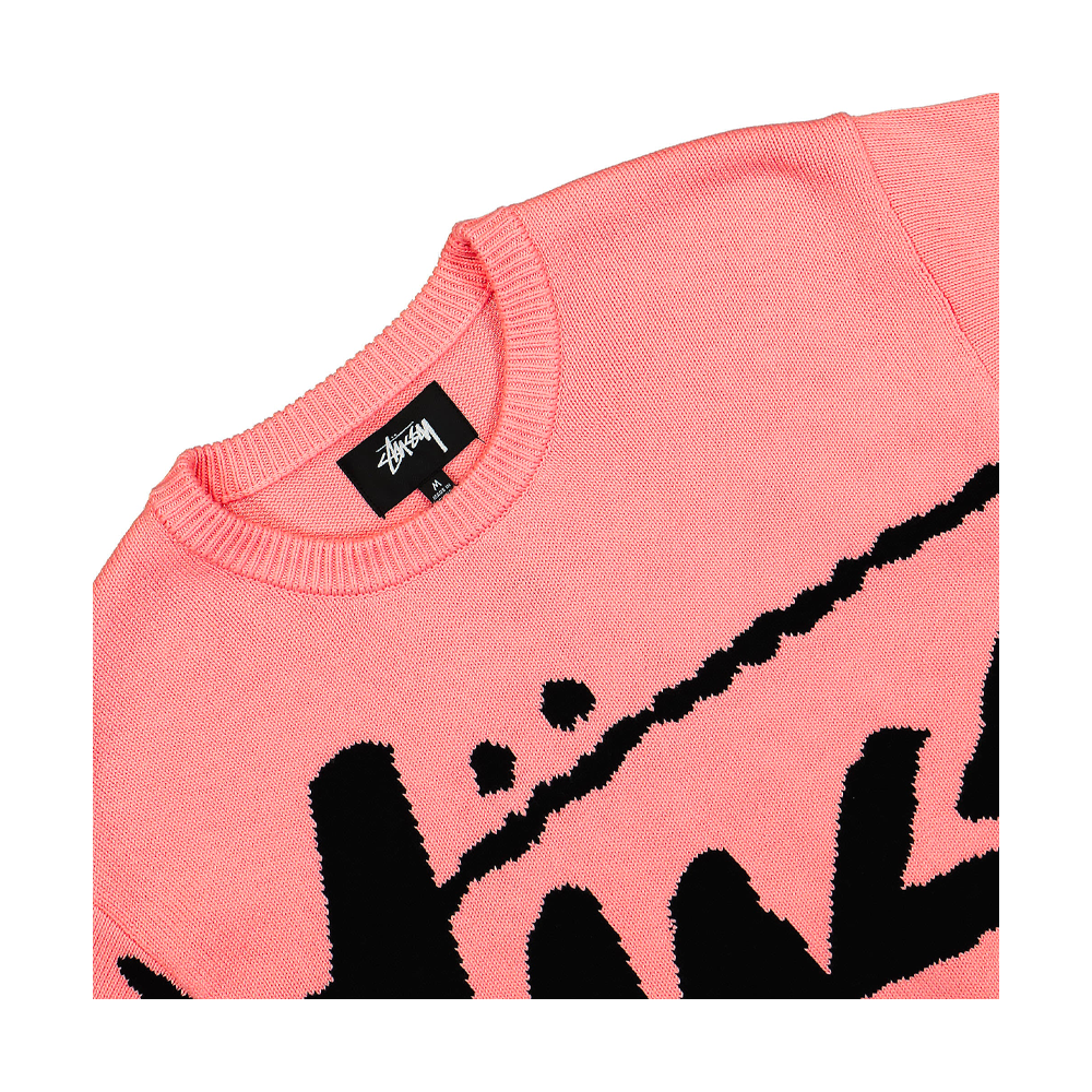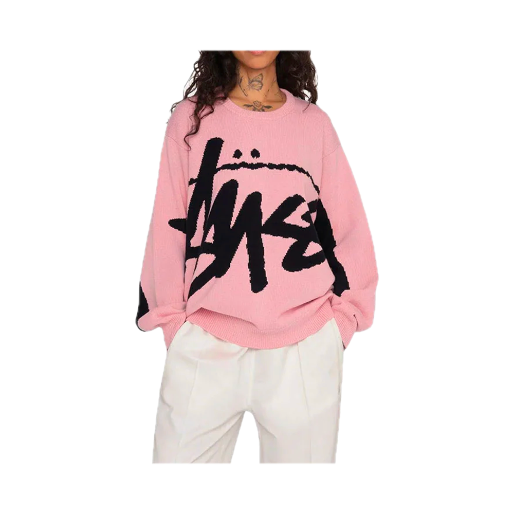 A regular fit, chunky knit crewneck sweater perfect for transitional seasons. A large contrast Stussy logo dominates the front in bold, iconic style. The bright pink colorway adds pop to your streetwear wardrobe, while maintaining a comfortable, durable construction.