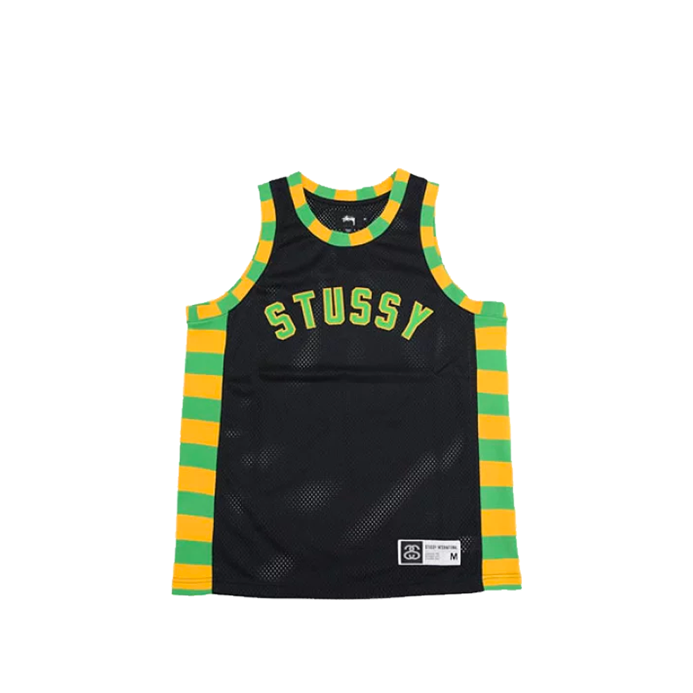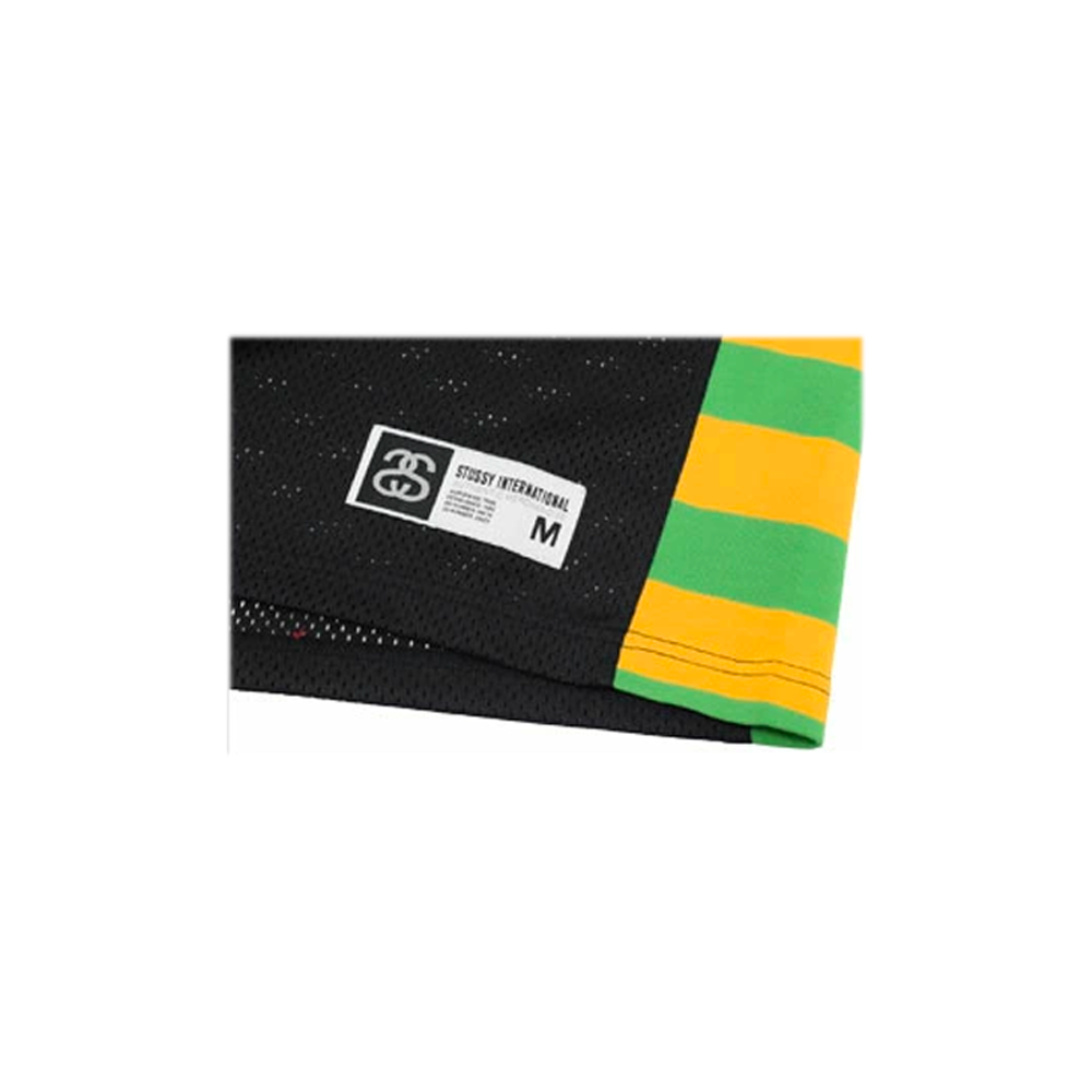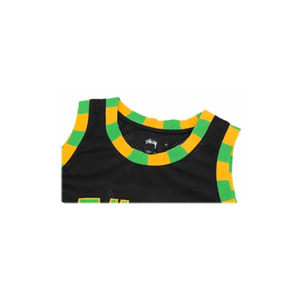 A direct nod to the street and playground aesthetics of the ’90s. The Stussy “Swingman Basketball Tank” features a breathable black mesh body and green and yellow striped details on the collar and shoulders, perfectly crafted from a sports jersey. The felt Stussy logo on the chest references classic American college basketball and adds a vibrant retro touch. Perfect for summer or layering, this tank is designed for those who embrace streetwear with a sporty attitude and urban spirit.