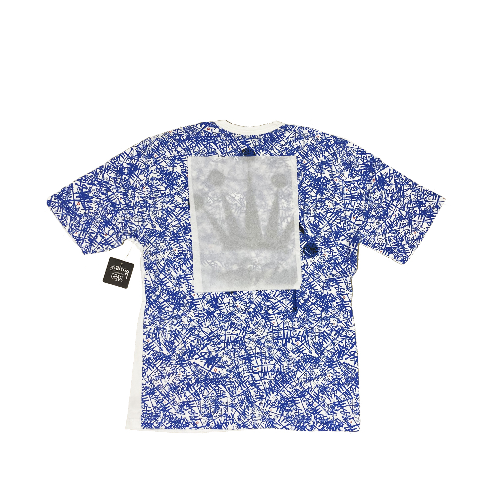 Stussy Stock Tone White / Cyan Tee All Over Print Limited Edition 014999