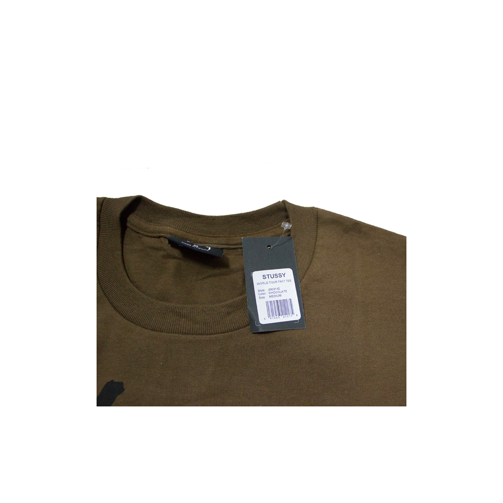L’ autunno del 1989 è ricordato per la prima uscita della maglietta Stussy World Tour. Shawn Stussy ha creato quello che sarebbe diventato un concetto duraturo nei disegni di t-shirt grafiche. L’idea e l’esecuzione erano semplici:contrapporre due culture dai mondi tradizionalmente diversi – uan linea di stile che era stata usata nell’arte e nella musica. Sulla parte anteriore della t-shirt, nomi di città associate a giganti della moda di fascia alta e glamour sono scritti in un formale Helvetica. Londra, Parigi, Los Angeles, New York, Tokyo, queste sono state le città considerate capitali dello stile del mondo contemporaneo. Il retro è stato stampato con nomi di borghi dove il nostro tipo di cultura di strada era davvero fiorente. Considerate buie e sotterranee, queste aree urbane non sfruttate stavano per scuotere il mondo. Scrawled in un manoscritto disegnato a mano, la parte posteriore della t-shirt si scontra con il fronte in stile, look e significato. I graffiti erano un grido di questa band di outsider – Brooklyn, Bronx, Compton, Santa Ana e Venezia – nel 2006 Stussy ha reinventato questa classica e iconica T-Shirt con il World Tour Project. Un gruppo di oltre 40 artisti è stato selezionato a mano e invitato a fare la loro interpretazione della maglietta World Tour. Sono grafici, graffiti artist, designer di abbigliamento e fumettisti. Il loro stile unico di scrittura manuale e la visione artistica sono stati scelti specificamente per adattarsi alla nostra ethos e identità. Le t-shirt sono state distribuite in piccoli gruppi a partire dal marzo 2006 e nuovi design sono stati abbandonati durante tutto l’ anno. Il secondo semestre dell’anno ha visto anche alcuni eventi speciali e collaborazioni per questo progetto. Tutti hanno costruito e creato nuove pagine in una storia senza fine.