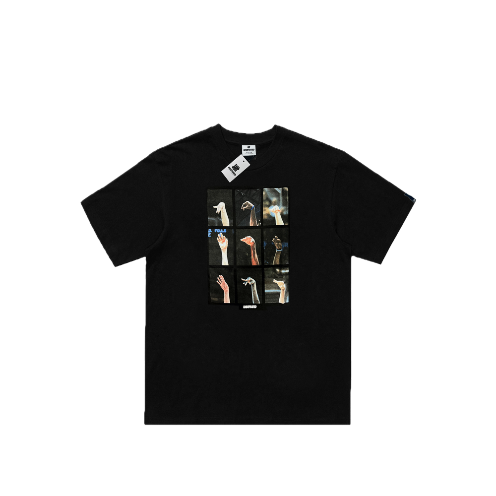 T-shirt in cotone bianco con grafica d’impatto a tema “Following Through”. Il fronte presenta una griglia 3×3 di scatti fotografici che immortalano nove mani diverse nell’iconico gesto di follow-through dopo il tiro a canestro, enfatizzando precisione e stile tipici del basket. Il contrasto tra il tessuto chiaro e la stampa a colori vividi mette in risalto l’azione, mentre sotto la composizione compare il logo UNDEFEATED. Etichetta interna con marchio Undefeated e dicitura “Made in Mexico”. Vestibilità regular.