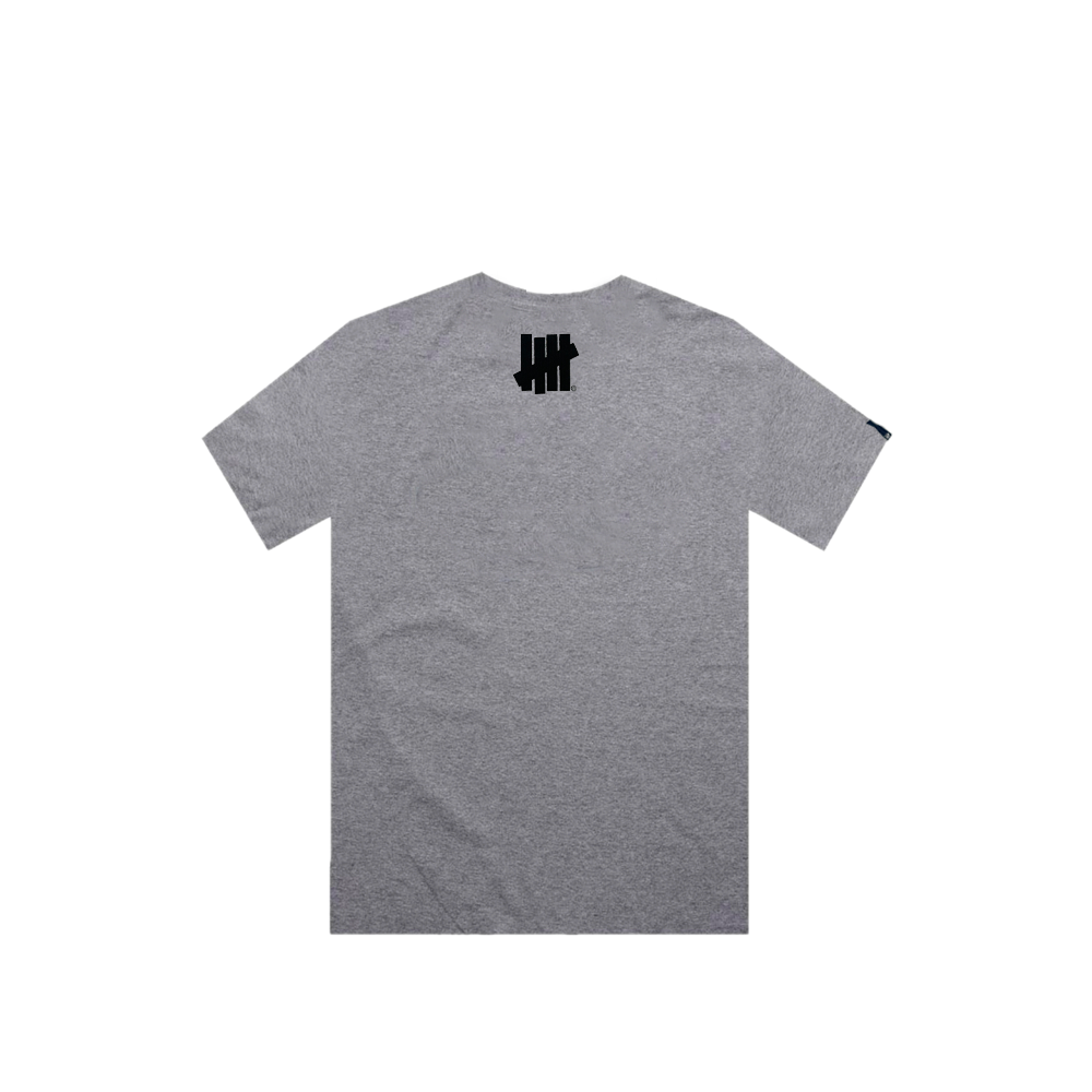 T-shirt in cotone grey heather con grafica box logo in stile bold-retro. Sul fronte spicca il nome UNDEFEATED in rosso vivo, racchiuso in un riquadro nero minimal con la scritta “LOS ANGELES 2002” posizionata in alto, tributo diretto alle origini del brand. Il retro mantiene un look pulito, decorato solo dall’iconico logo Five-Strikes nero sotto il colletto.