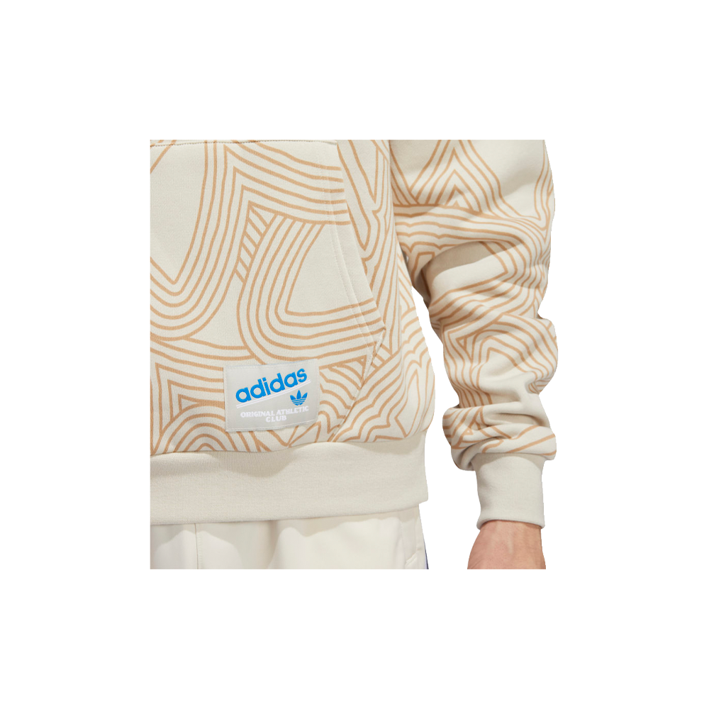 With an allover print that celebrates the classic Trefoil, this hoodie from Adidas knows that comfort should have a killer style too. The retro details like the logo applied on the pocket the classic atmosphere and the adjustable hood with drawstring gives you the right fit. Made of soft fleece cotton, it has softness on the closure for a look to show off every day. The cotton used by Adidas supports the cultivation of sustainable cotton.