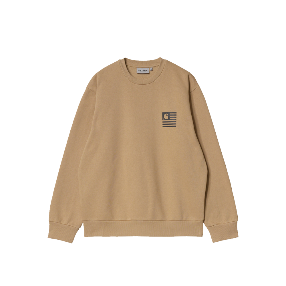 The Carhartt WIP Fade State Sweatshirt is made of heavy brushed cotton-polyester blend jersey. Features a seasonal version of our State Flag graphic applied with an embossed textured print technique on the chest and back. Ribbed cuffs, hem and crew neck.
