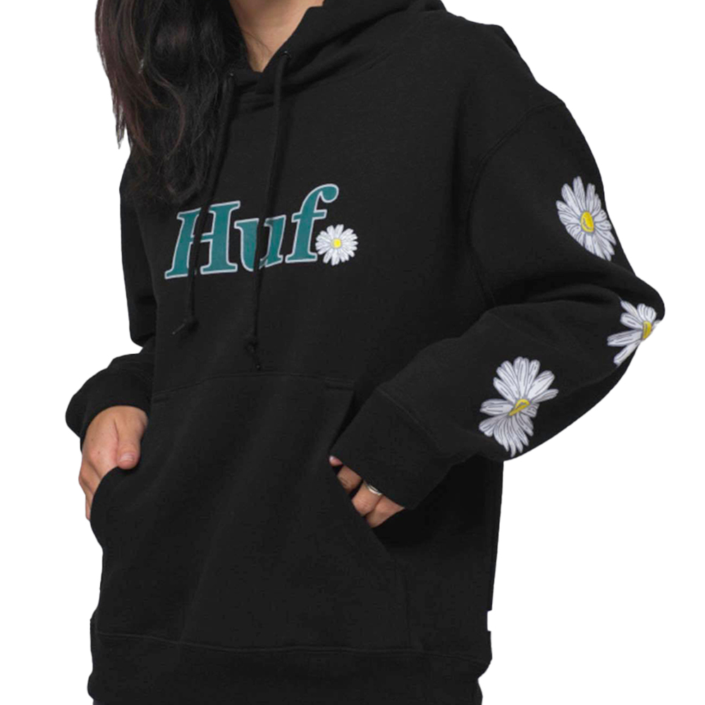 The In Bloom Pullover Hoodie is made from super soft fleece and features a HUF “Domestic” logo on the chest with daisy details along the left sleeve as a nod to the innocence of youth.
