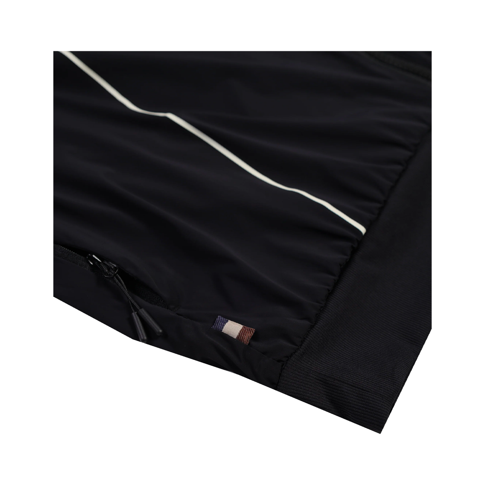 The Stretch Stripes Mockneck by Aquascutum Active is a turtleneck sweater that combines technical performance and refined style. Made from Four-Sides Stretch fabric composed of 88% nylon and 12% spandex, it offers excellent elasticity in all directions, ensuring maximum freedom of movement and comfort. The design features a contrasting heat-sealed print and the logo printed on the left chest, giving it a distinctive and modern touch. The cuffs and hem are finished with elastic tape for a secure and snug fit. With its regular fit, this sweater is ideal for those looking for a versatile garment, suitable for both sports activities and a casual and refined look.