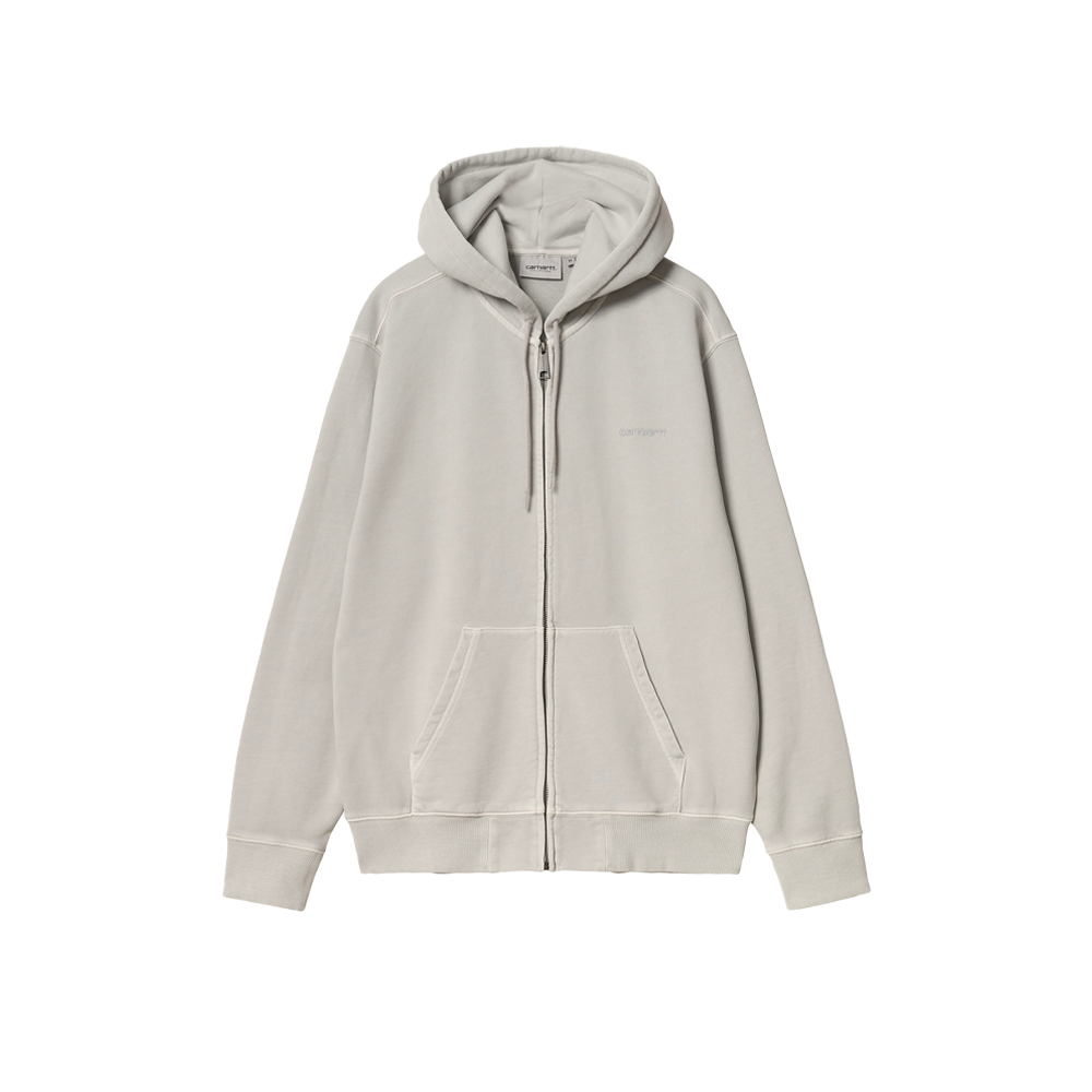The Carhartt Hooded Duster Script Jacket features a loose fit and is crafted from heavy cotton jersey for a soft loopback construction. The model has also been garment dyed for greater softness and a lived-in but intense shade. An embroidery of the logo stands out on the front.
