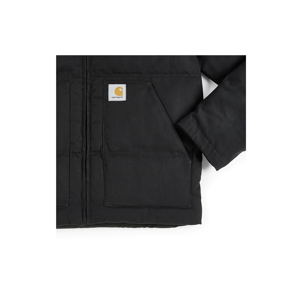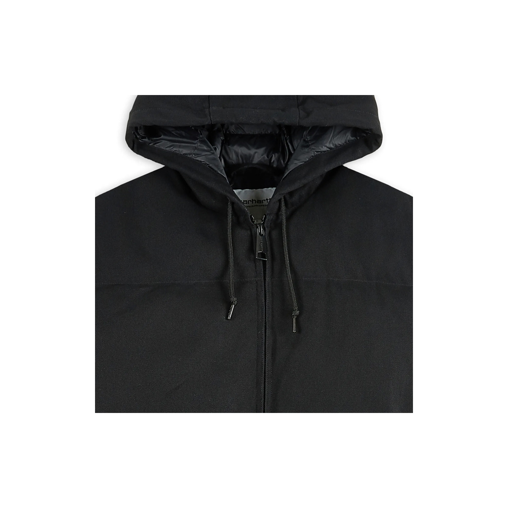 Carhartt WIP jacket lined with 100% Dearborn organic cotton canvas and synthetic padding for a great feeling of warmth. Nylon taffeta lining, adjustable hood, zip closure, two side pockets, adjustable bottom and label sewn on the front.