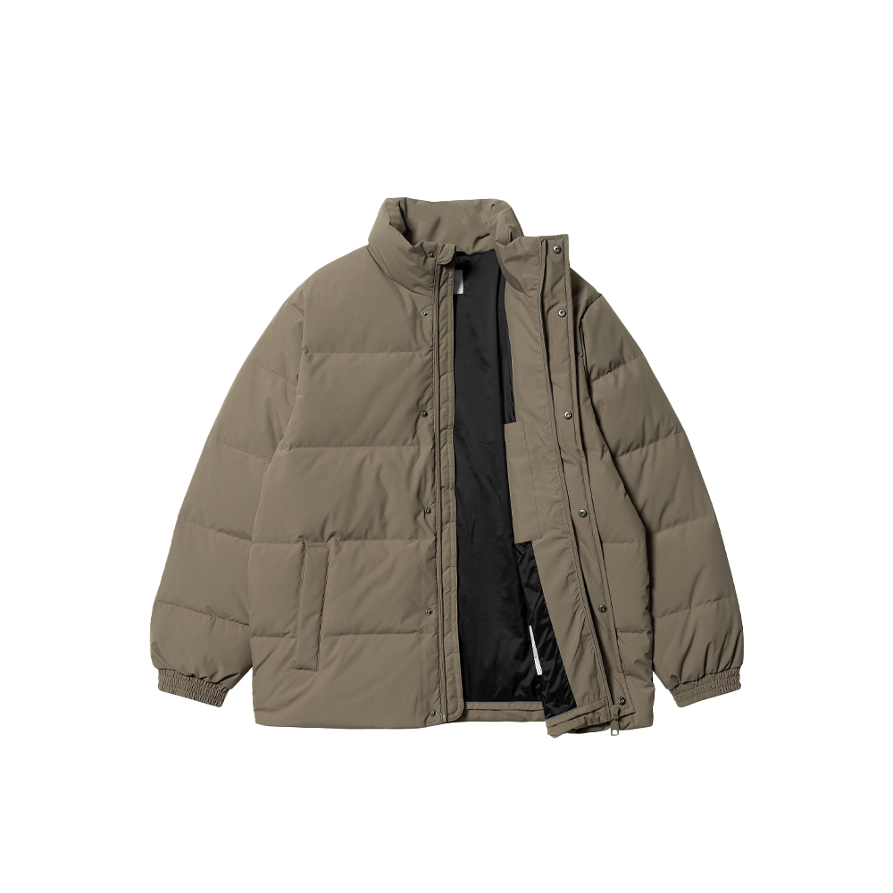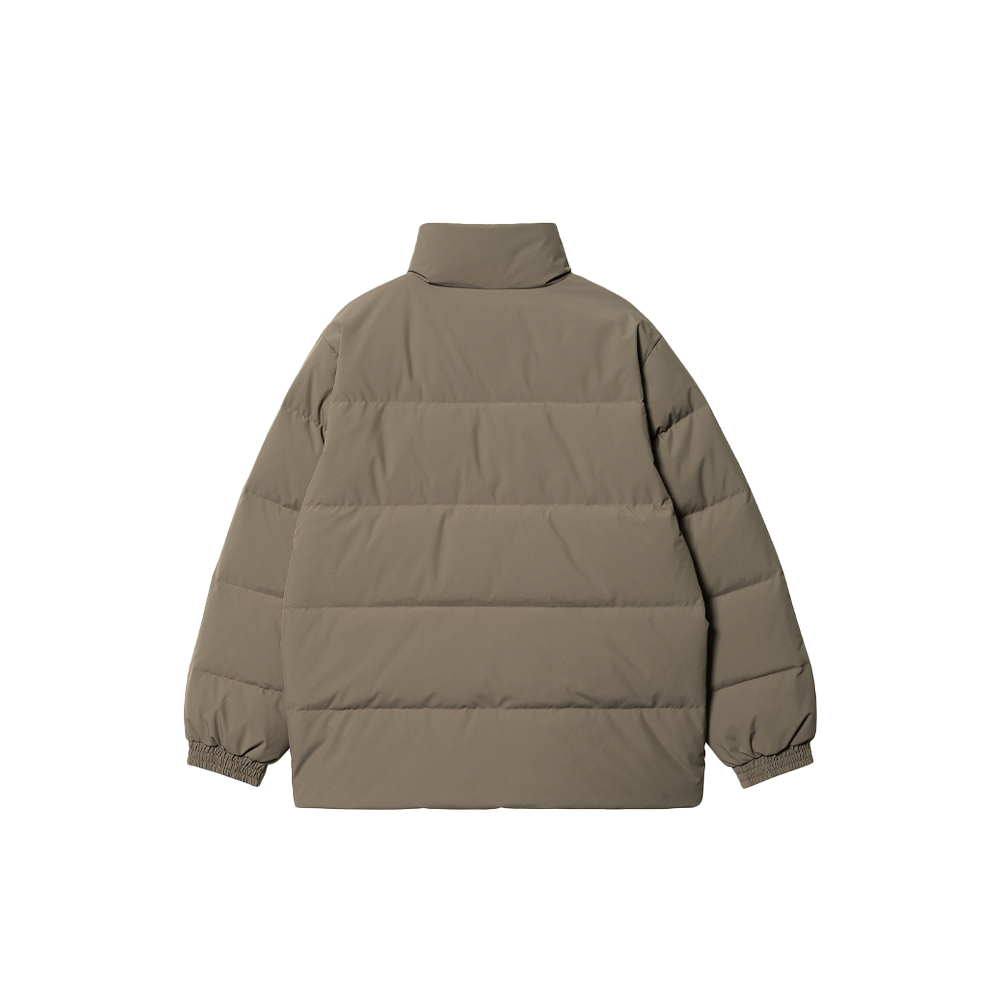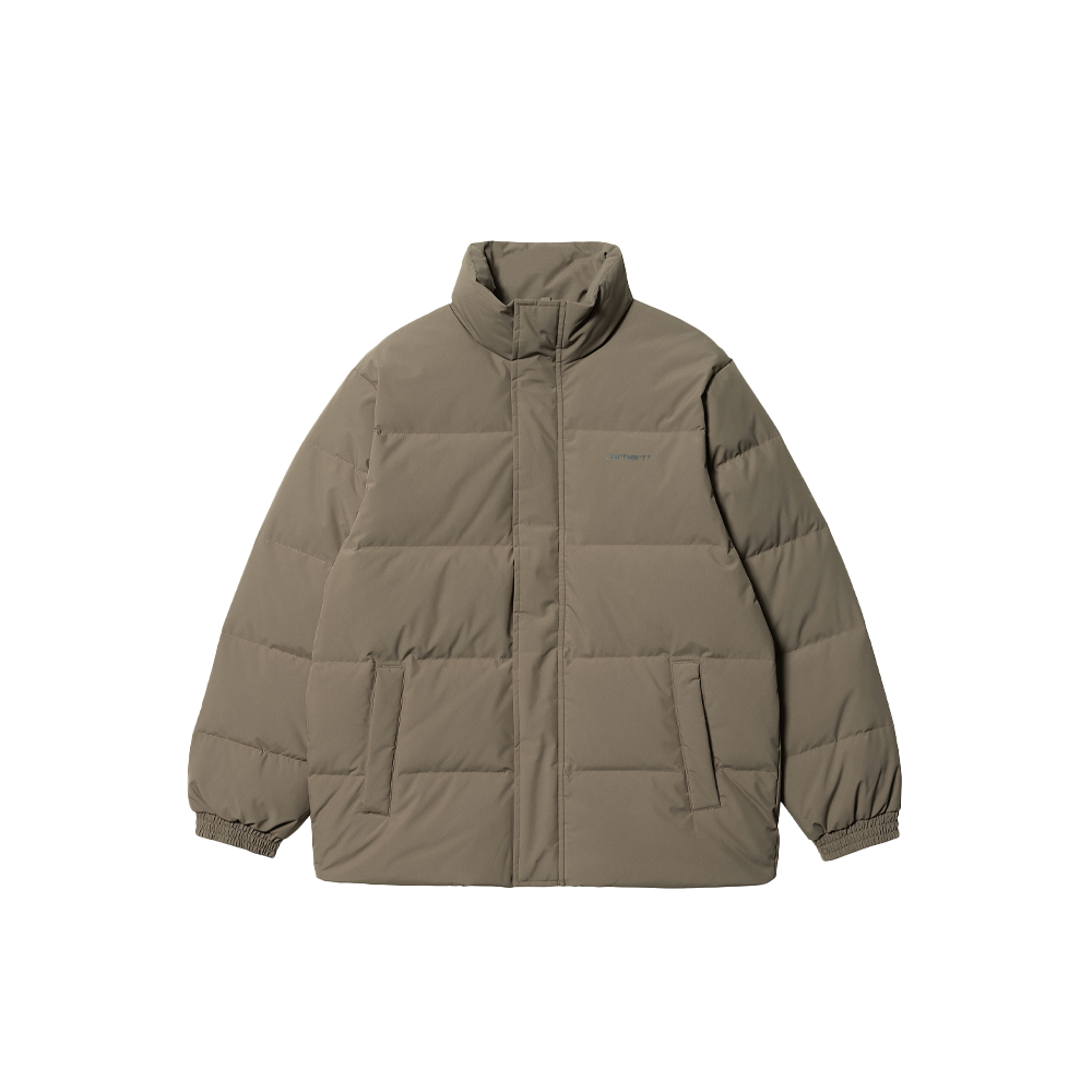 The Carhartt WIP Danville Jacket is a lightweight insulated jacket featuring a waterproof polyester taffeta exterior and nylon taffeta lining. The jacket features a mixed padding of down and goose down, ribbed cuffs and two front pockets. Finished with discreet logo lettering on the left chest.