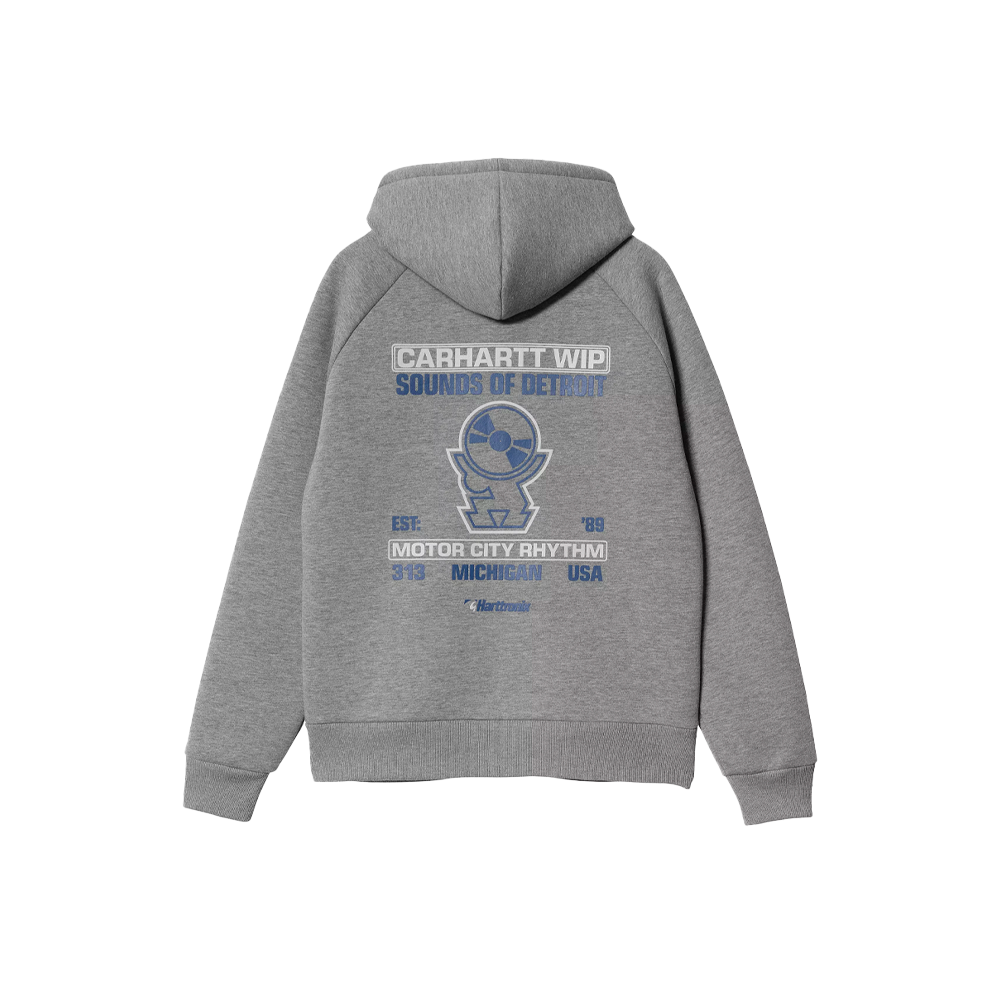 The Carhartt WIP Harttronix Car-Lux Hooded Jacket is made of a heavyweight polyester-cotton blend that feels soft to the touch. The jacket features a brushed fleece lining. The kangaroo pocket is accented with a square label. The jacket is accented with graphic prints and embroidery.