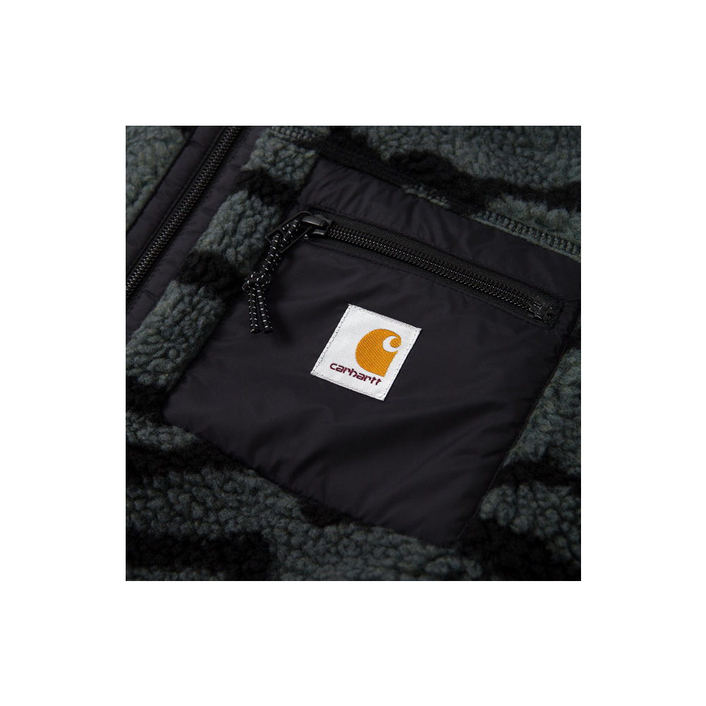 La Carhartt WIP Prentis Liner è realizzata in pile pesante 10,03 once e presenta dettagli in taffetà di nylon a contrasto e un solo taschino sul petto con etichetta Carhartt WIP. È inoltre caratterizzata da imbottitura a rete per una buona traspirabilità.