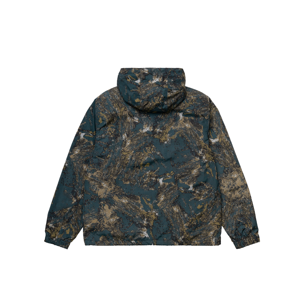 The Carhartt WIP Terra Jacket is made from lightweight 2.7-fold water repellent fabric and features a mesh lining to ensure breathability. Features seasonal all-over print, zip pockets, adjustable hood and bottom band with reflective drawstring. The garment is completed by a label with reflective writing on the pocket on the left side of the chest.