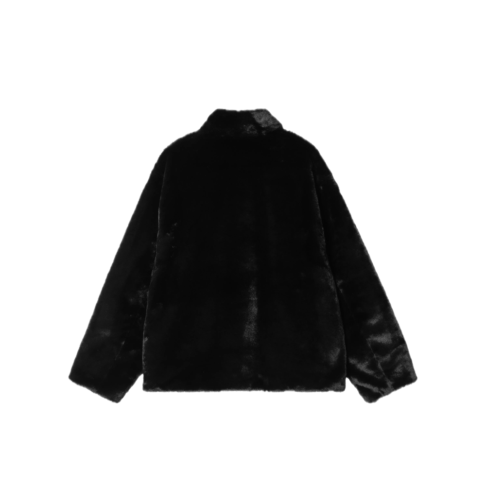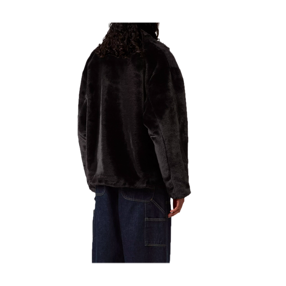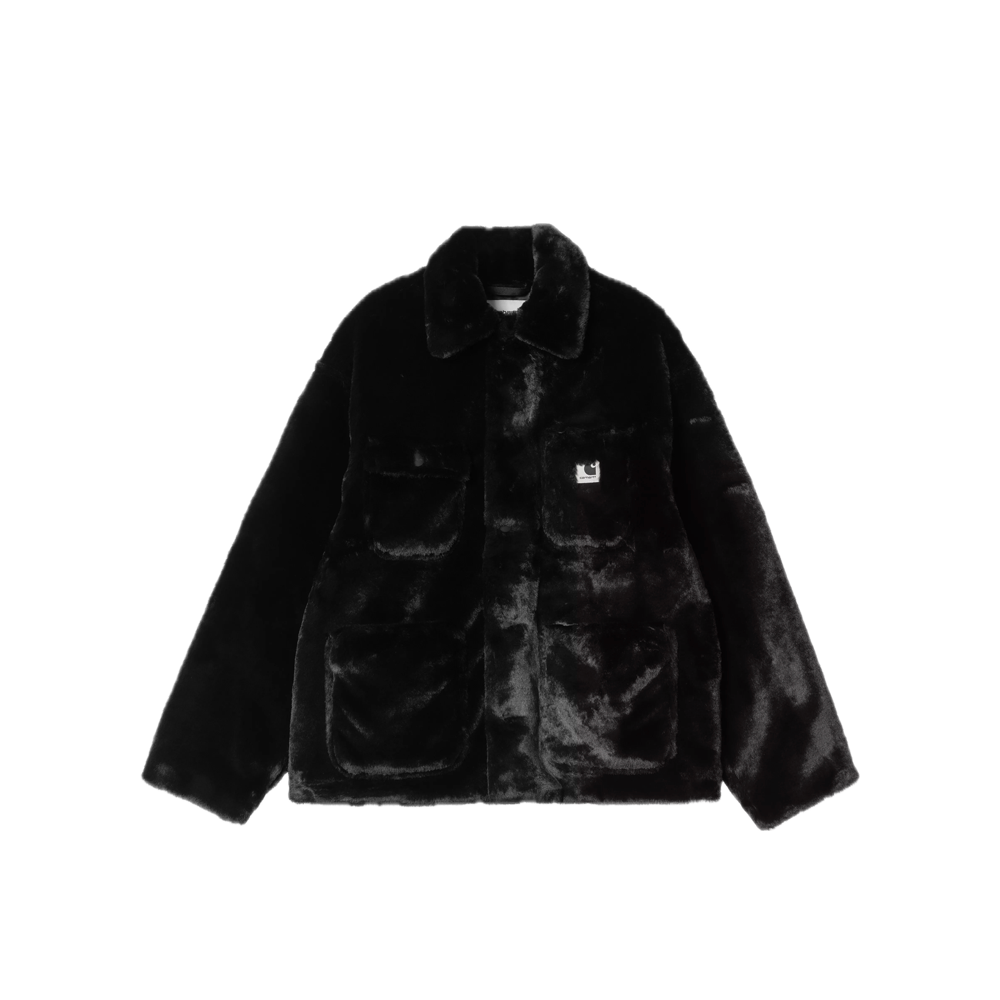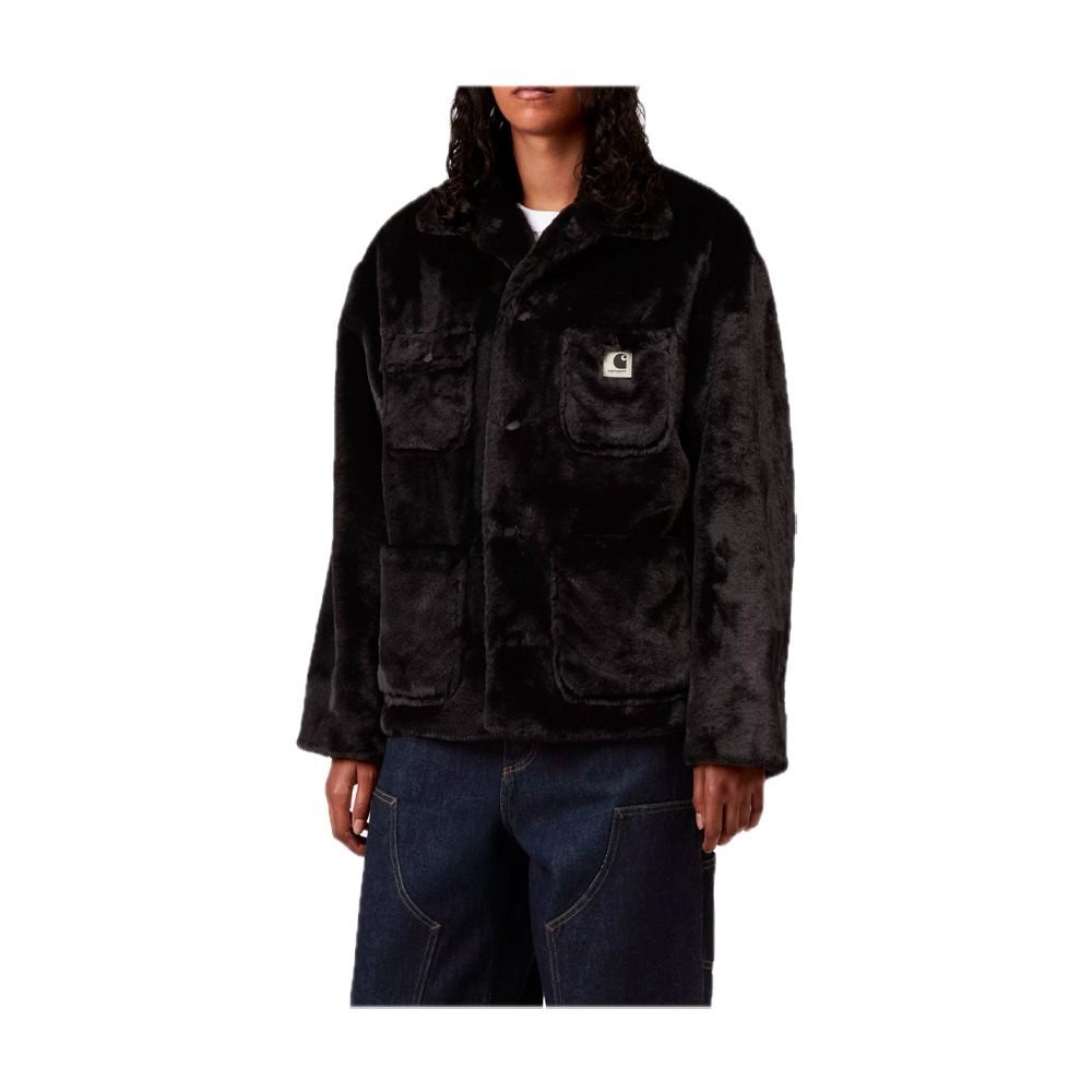 The Carhartt Olney Michigan is made of heavyweight faux fur with a nylon taffeta lining. It features four front pockets, one with a buttoned flap. A square woven label completes the design.