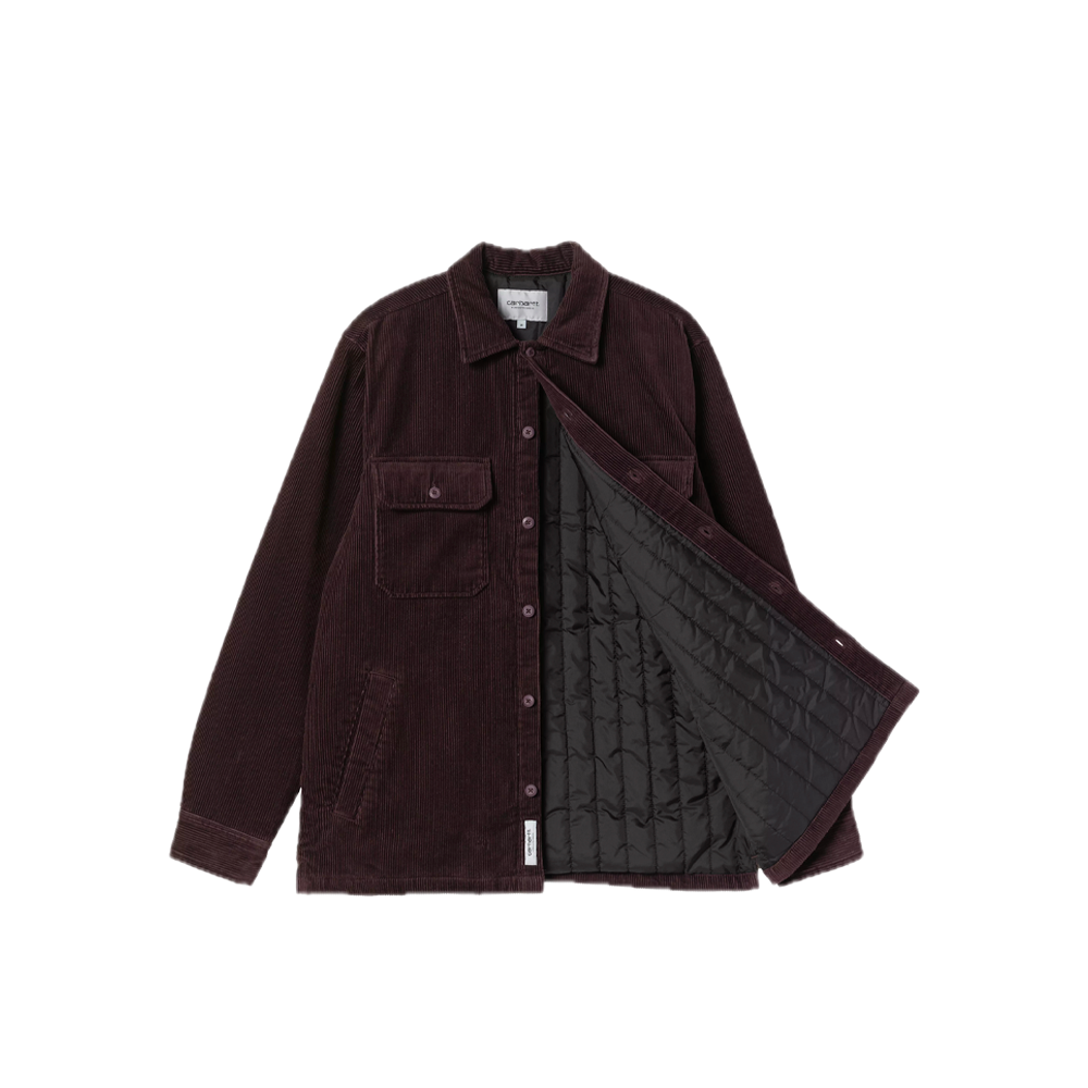 La Carhartt Whitsome Shirt è realizzata in velluto a coste di cotone a otto coste da 9,2 once (circa 270 g), un tessuto di peso medio con creste spesse, e ha una vestibilità ampia. Il capo è stato inoltre lavato in capo per renderlo morbido e proteggerlo dalla perdita di forma. L’isolamento è garantito da una fodera in taffetà di nylon trapuntata verticalmente. Due ampie tasche applicate sul petto, una delle quali con etichetta quadrata in tessuto, e due tasche a filetto completano il design.