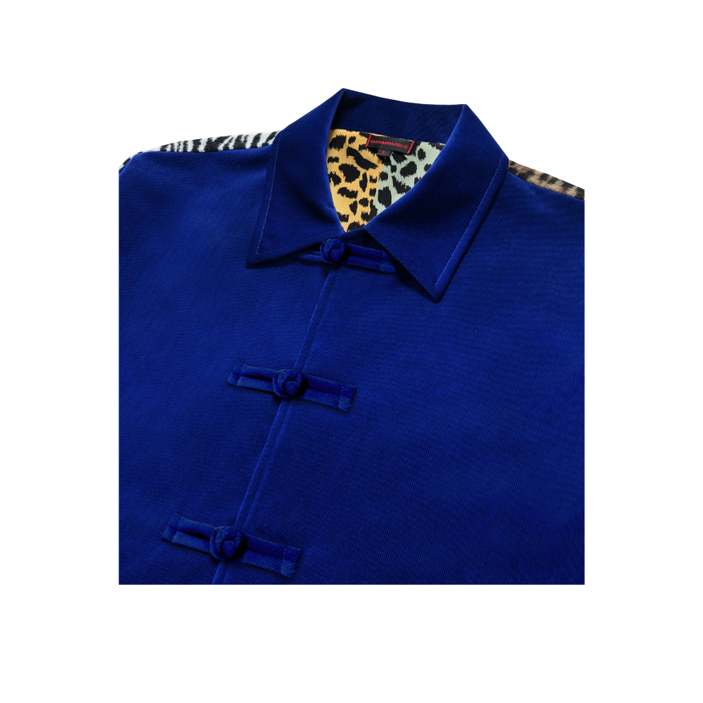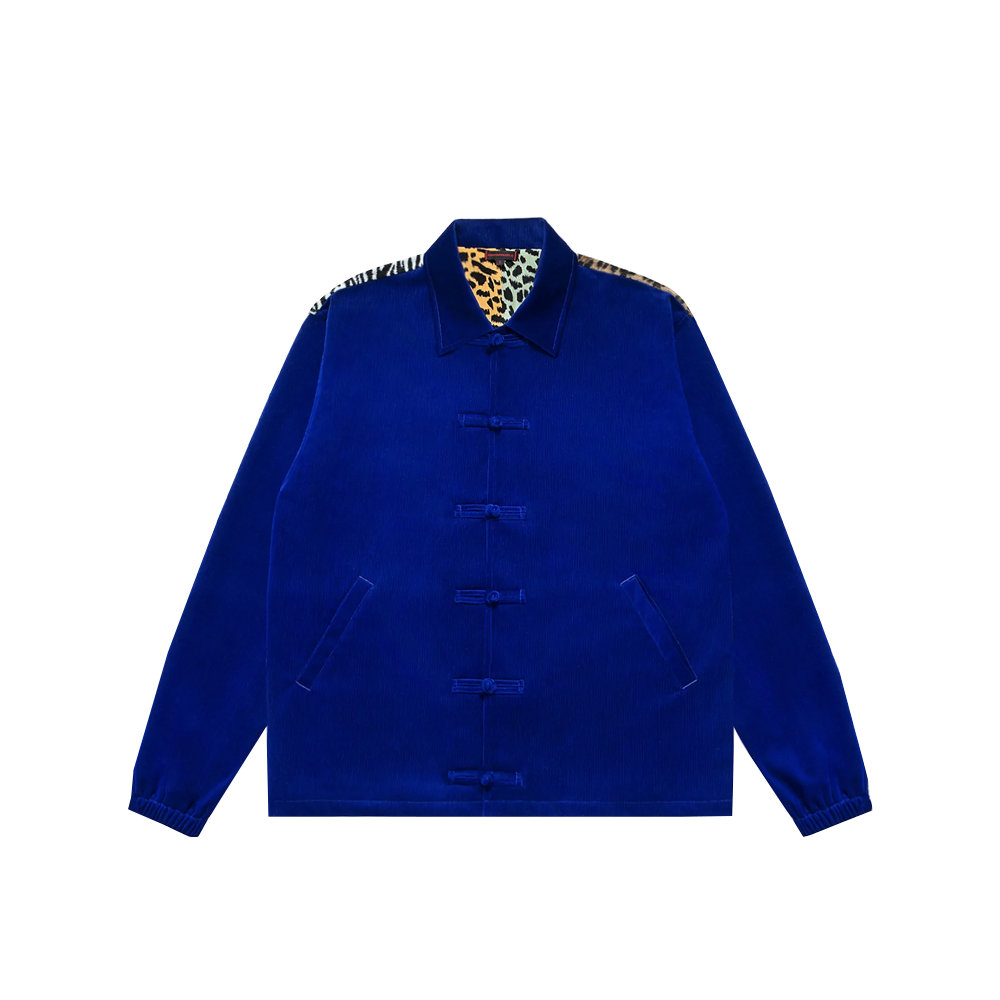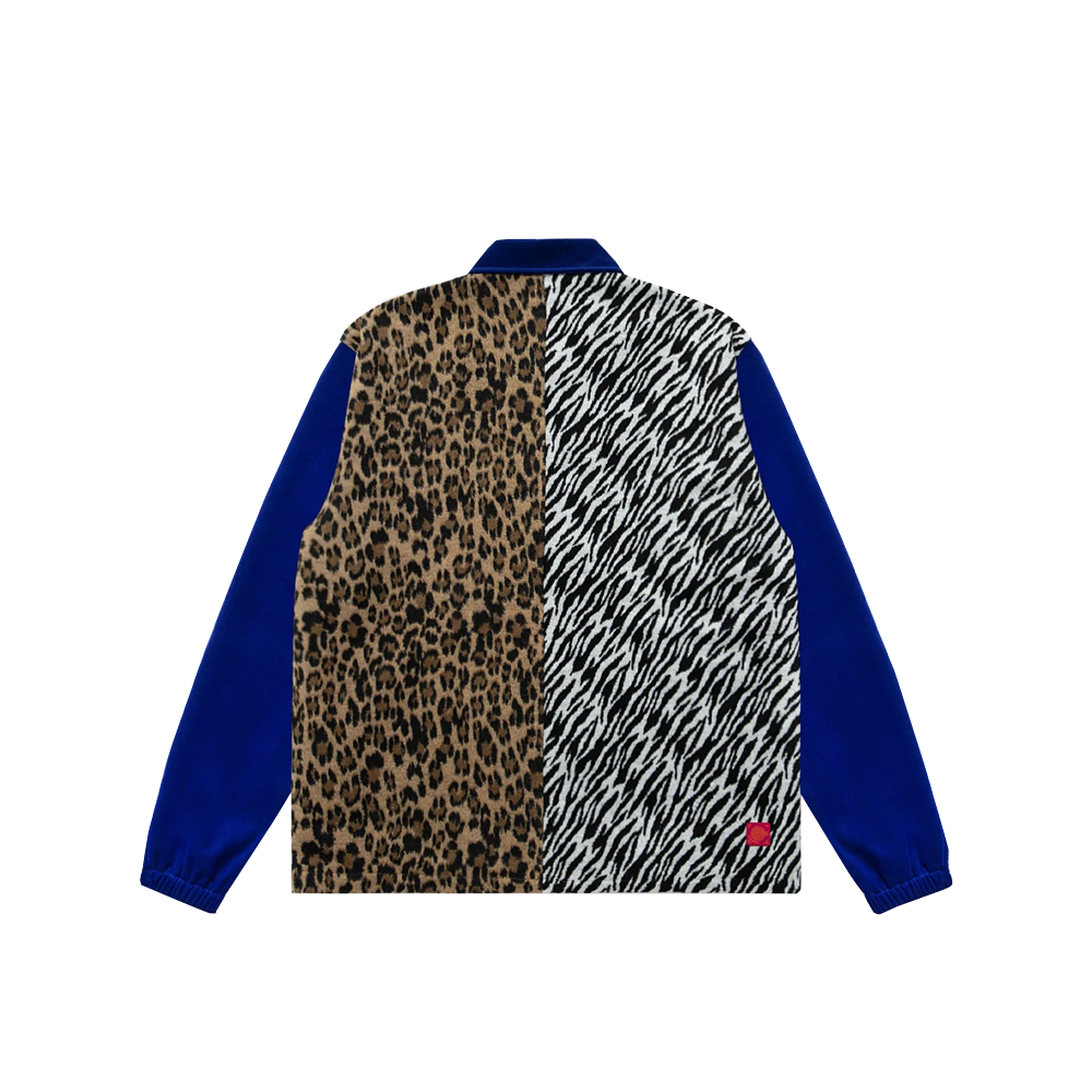 The CLOT coach jacket is characterized by a leopard and tiger print at the back.