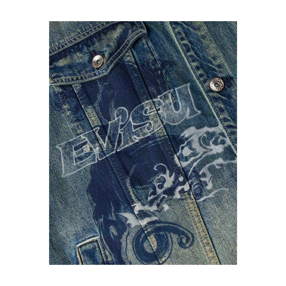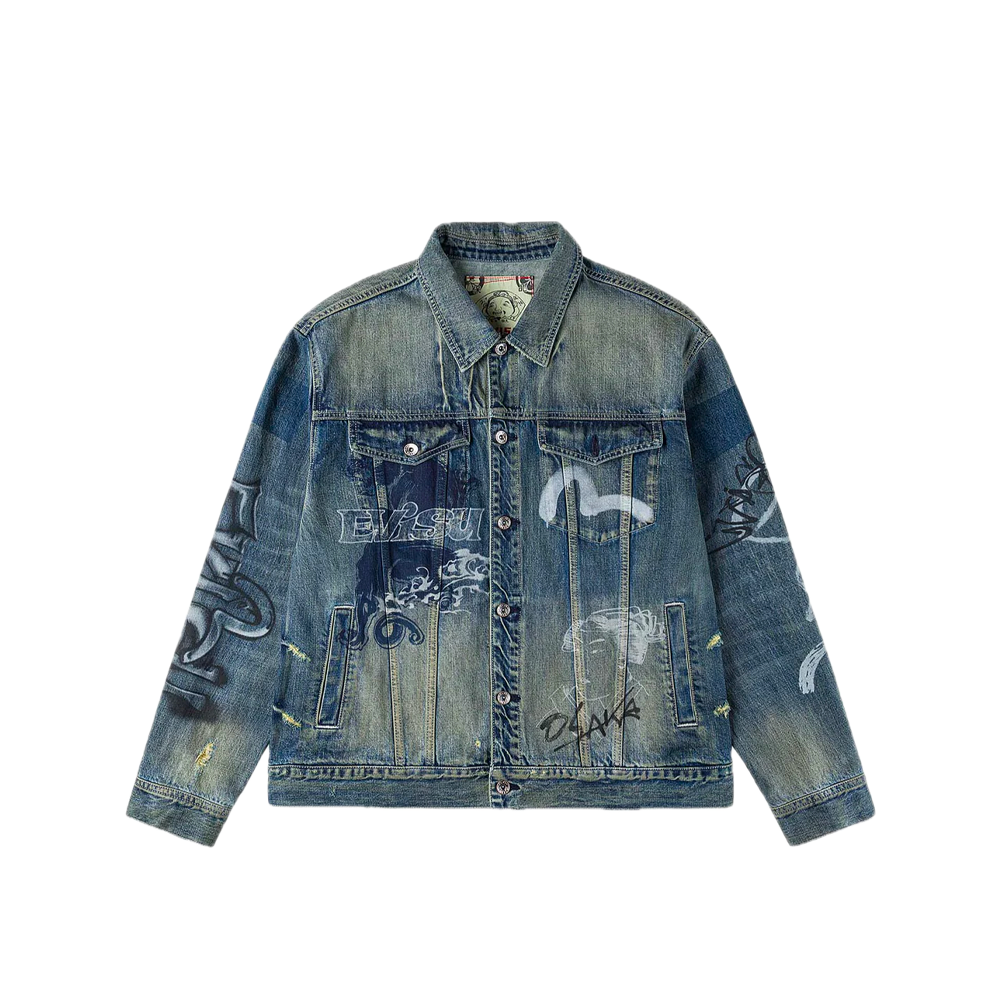 Evisu Allover Graffiti Printed Denim Jacket Indigo 2ESHTM6DJ1009RXDN
