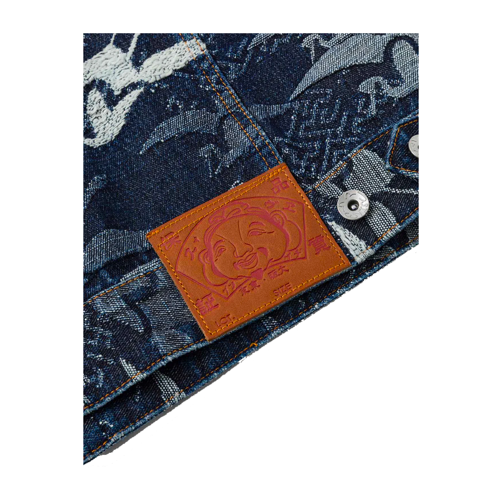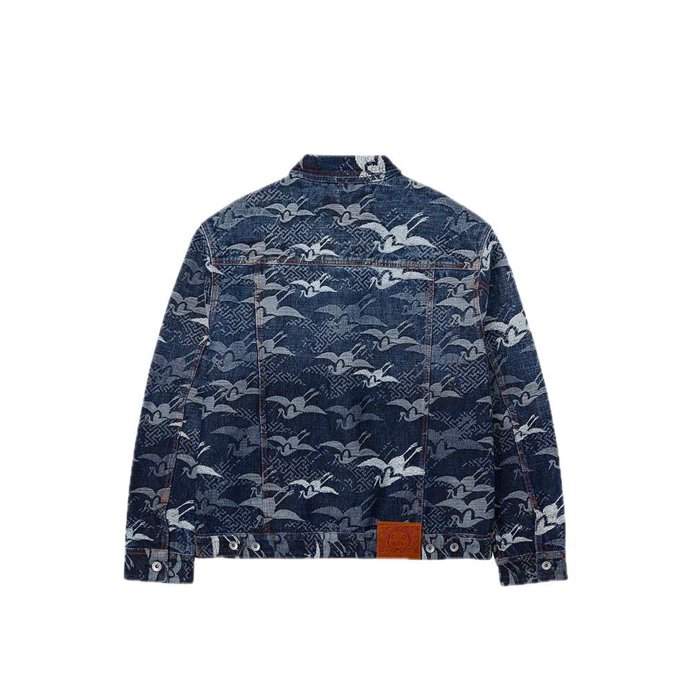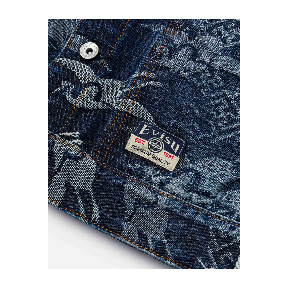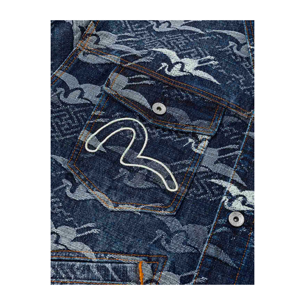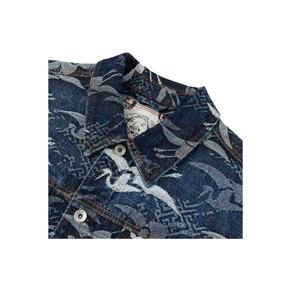 Evisu Allover Seagull Cranes Jacquard Loose Fit Denim Jacket Dark Indigo 2EAHTM5DJ1007LFDN